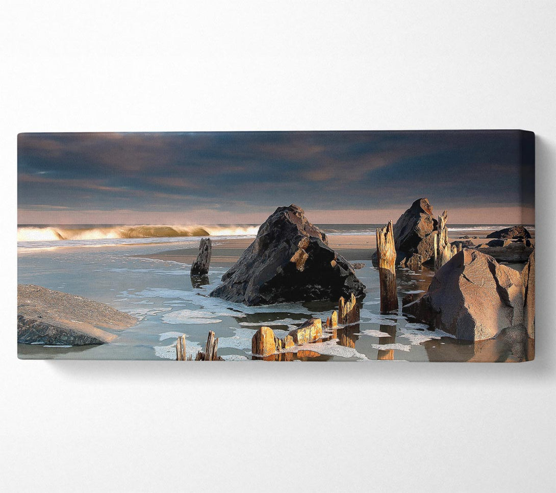 Monmouth Beach, New Jersey, USA, Leinwand, gedruckt auf beschichteter Polyester-Leinwand. Auf einem 44 mm großen Kastenrahmen montiert, fertig zum Aufhängen.