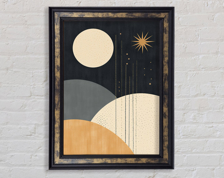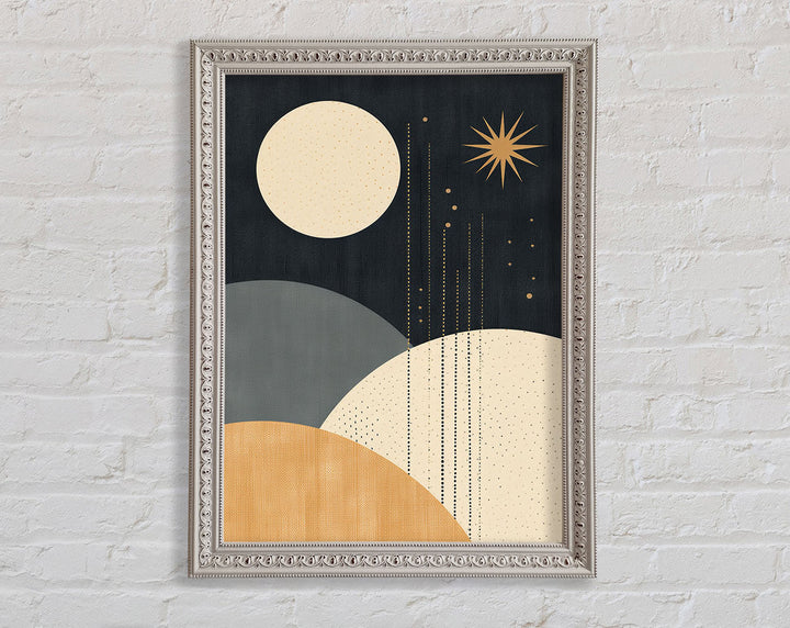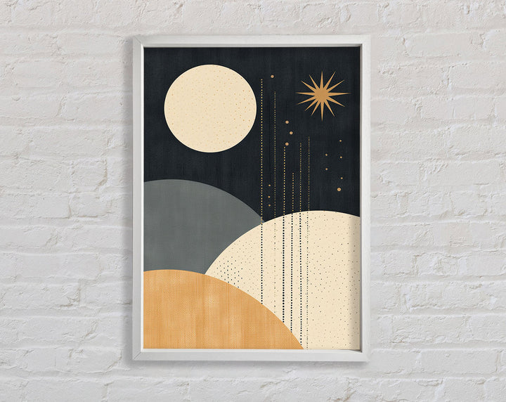 Add a touch of magic to your space with the Moon And Stars Bohemian Shapes Framed Print. This stunning piece of framed art is available in six sizes, from small to oversized, to perfectly fit any room. With a variety of colors to choose from, you can easily match it to your existing décor. Each print is meticulously handmade in the United Kingdom, ensuring high quality and attention to detail. The framed print comes ready to hang, making it a hassle-free addition to your home. Enjoy the whimsical design of moon and stars, bringing a bohemian charm to your living space.