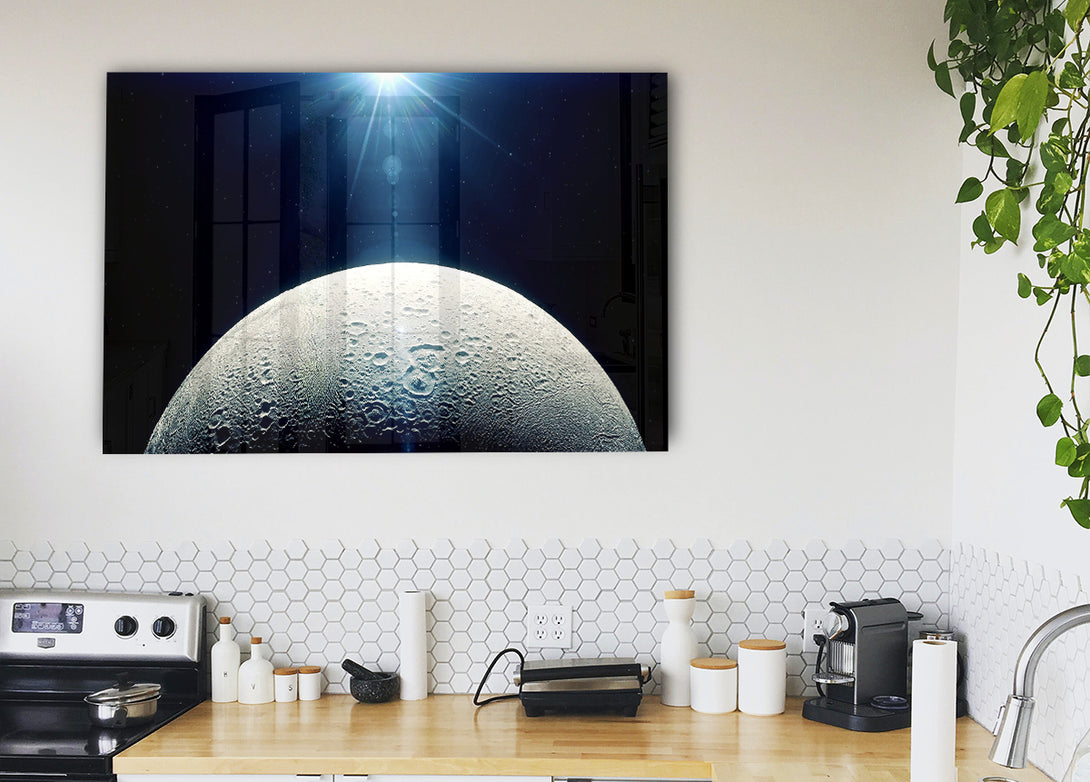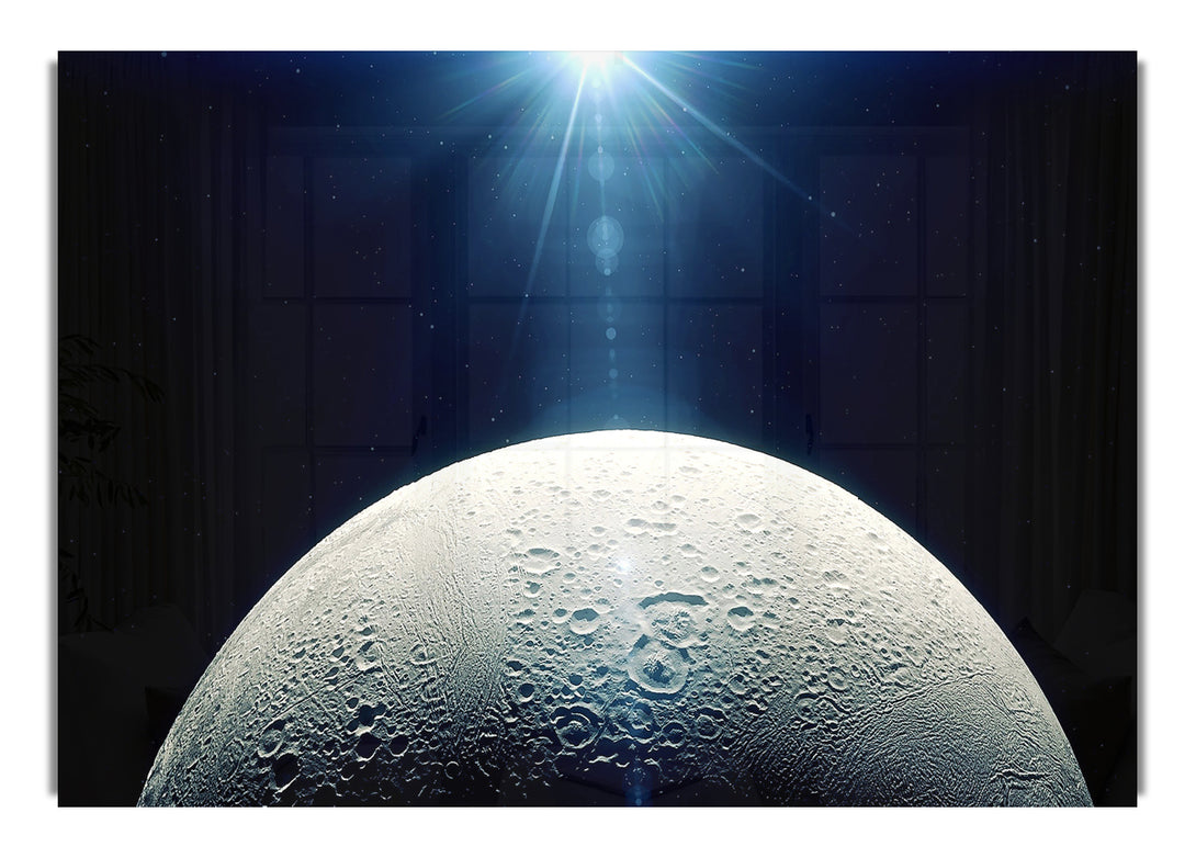 Acryldruck „Mond im Weltraum“, UV-gedruckt auf 5 mm dickes Acrylglas. Wird mit allem geliefert, was Sie zum Aufhängen an die Wand brauchen.