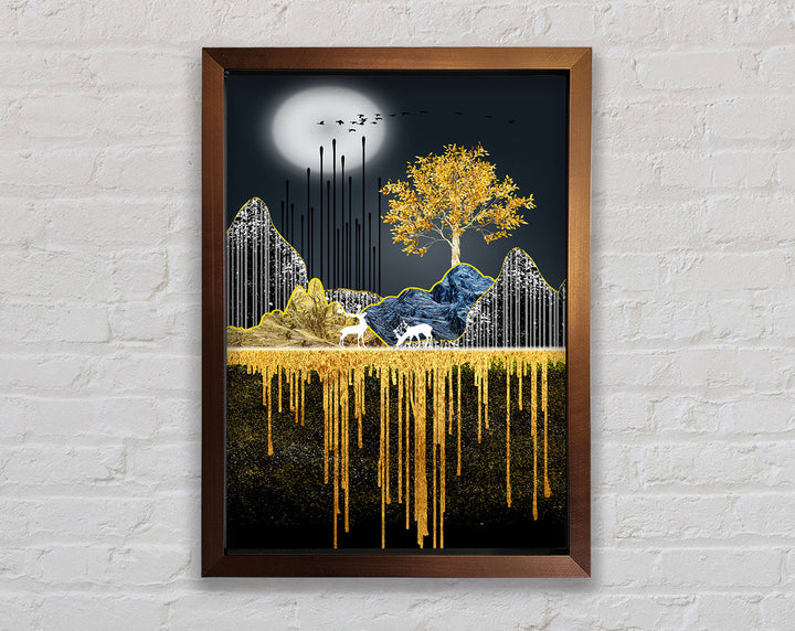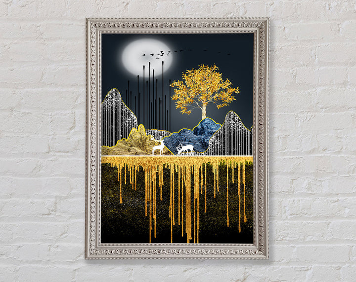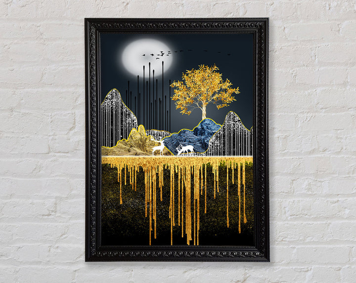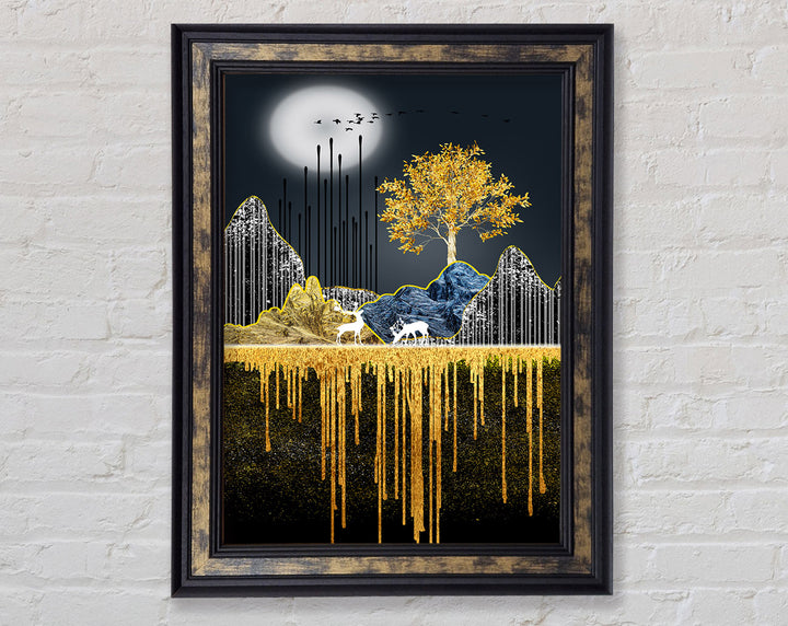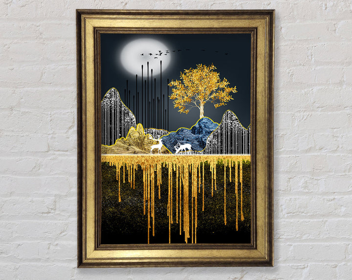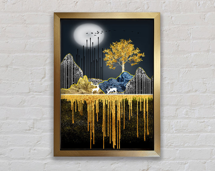 Moonlit Gold Tree Framed Print