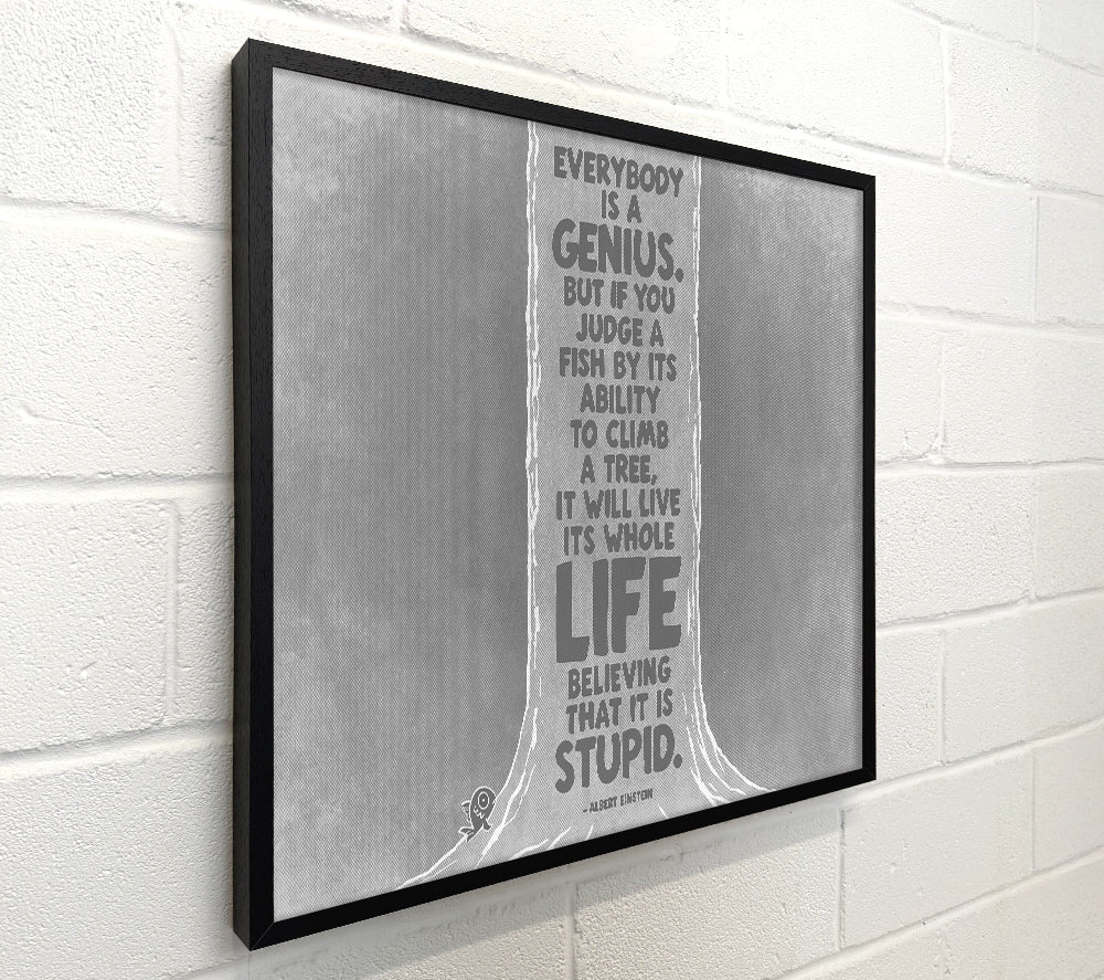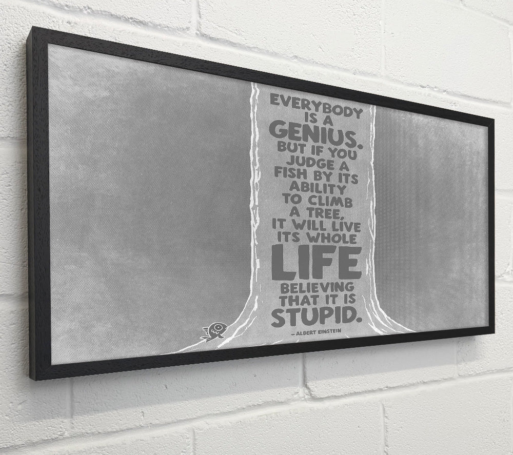 Motivational Quote Albert Einstein Everybody Is A Genius Grey