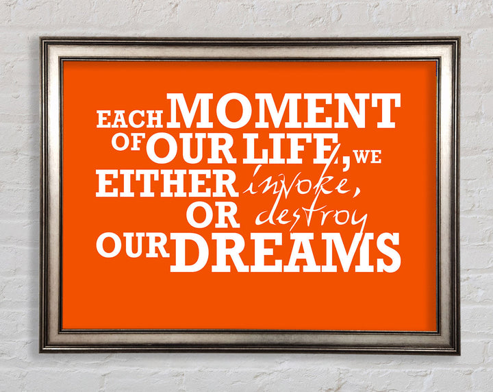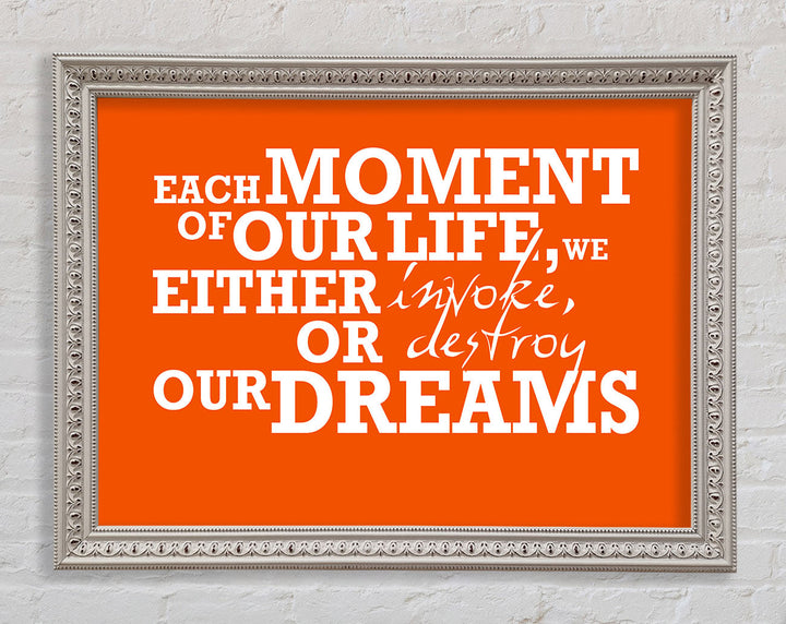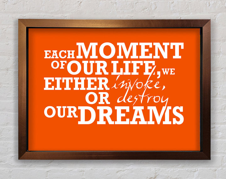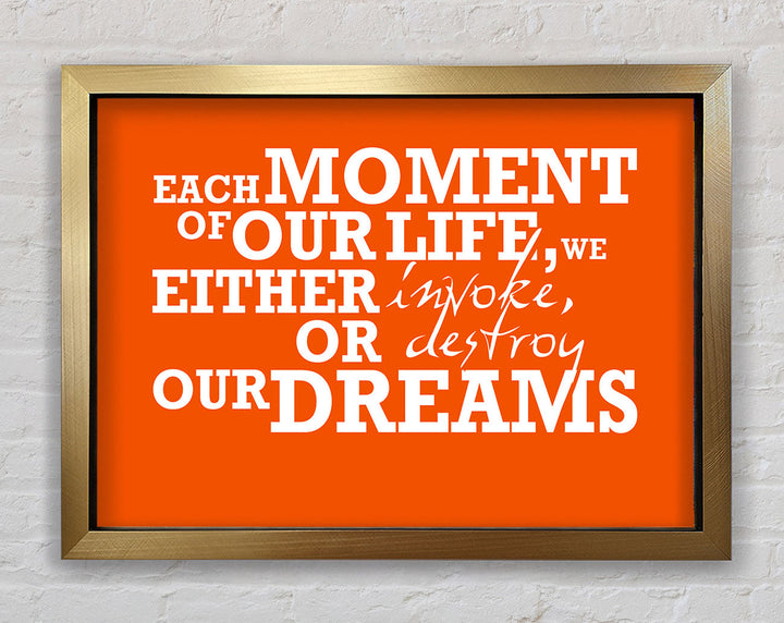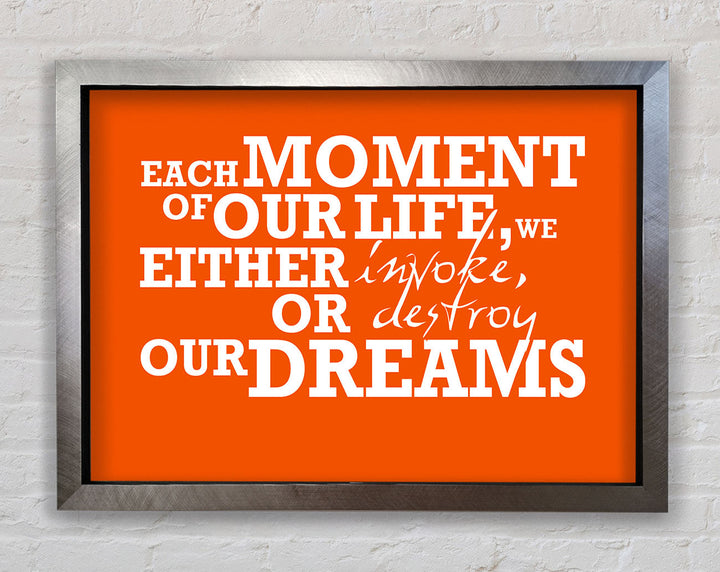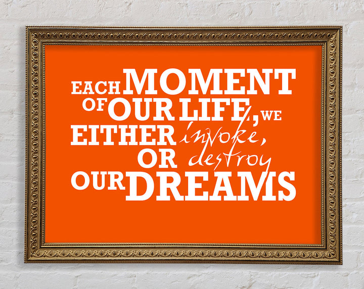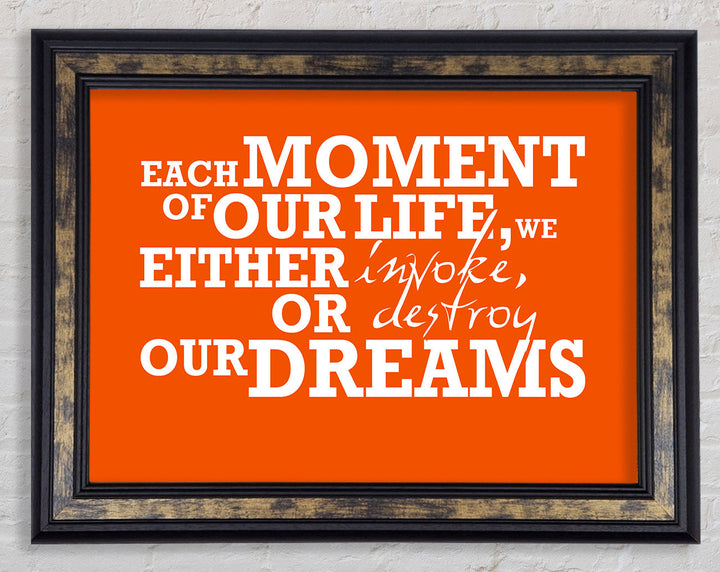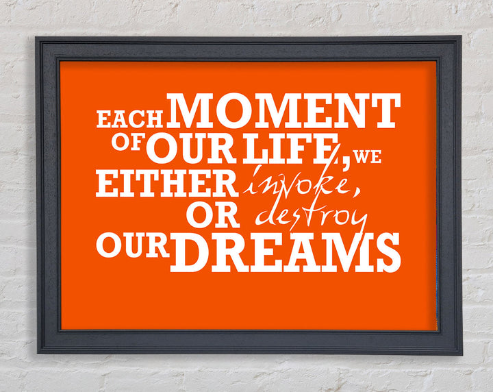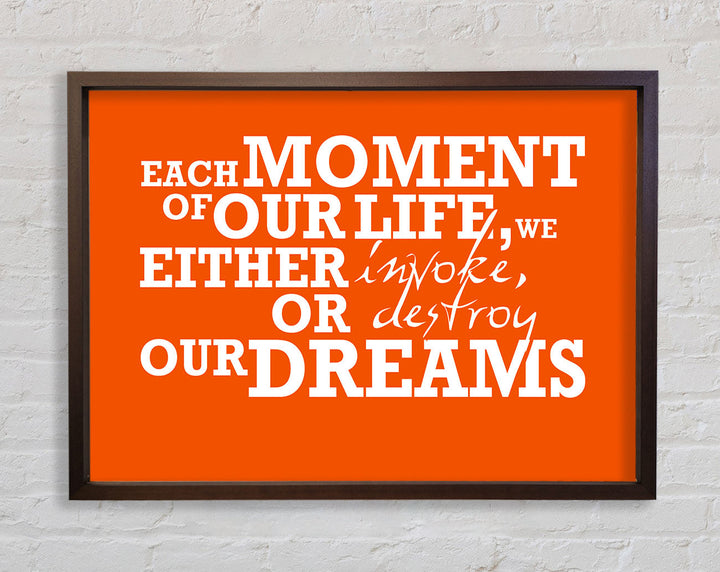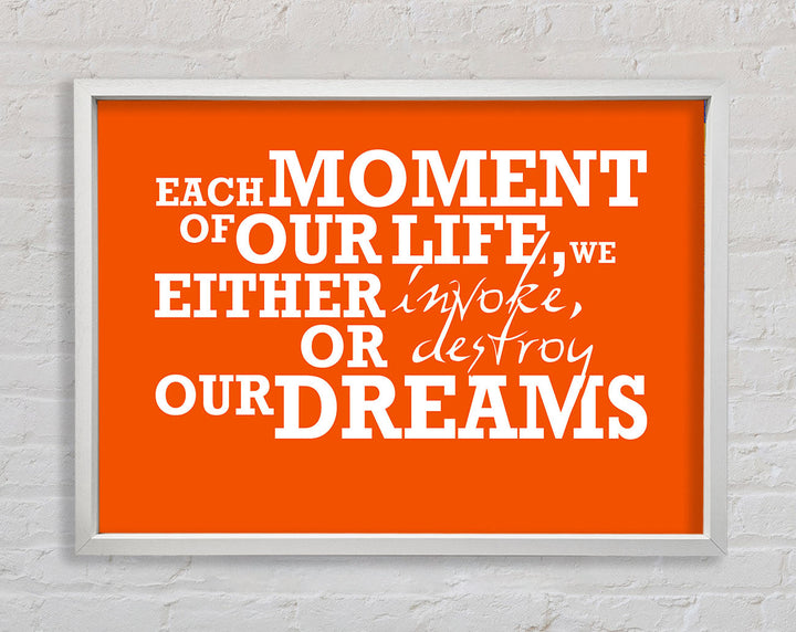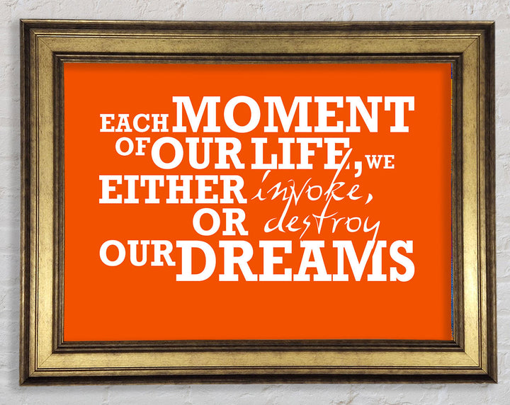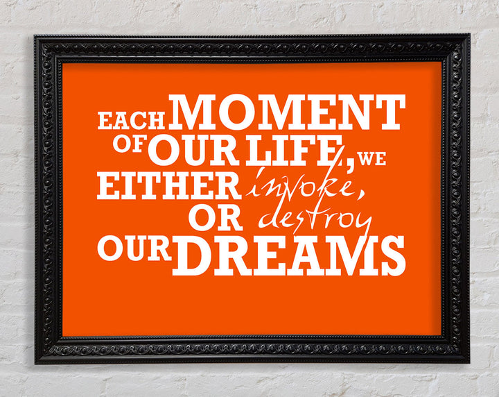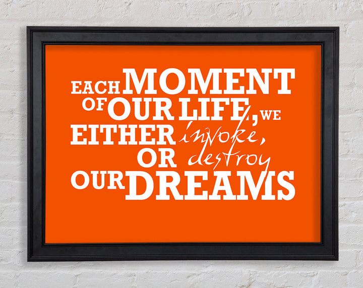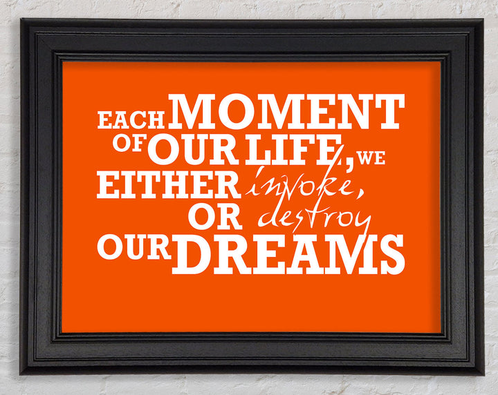 Gerahmter Druck mit motivierendem Zitat „Jeder Moment unseres Lebens“, erhältlich in mehreren Rahmenfarben. Fertig zum Aufhängen aus der Schachtel und handgefertigt im Vereinigten Königreich.