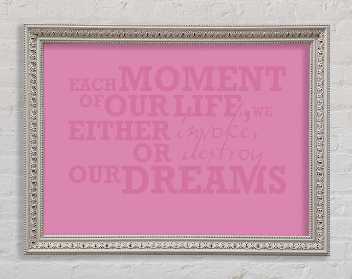 Motivierendes Zitat „Jeder Moment unseres Lebens“ in Pink
