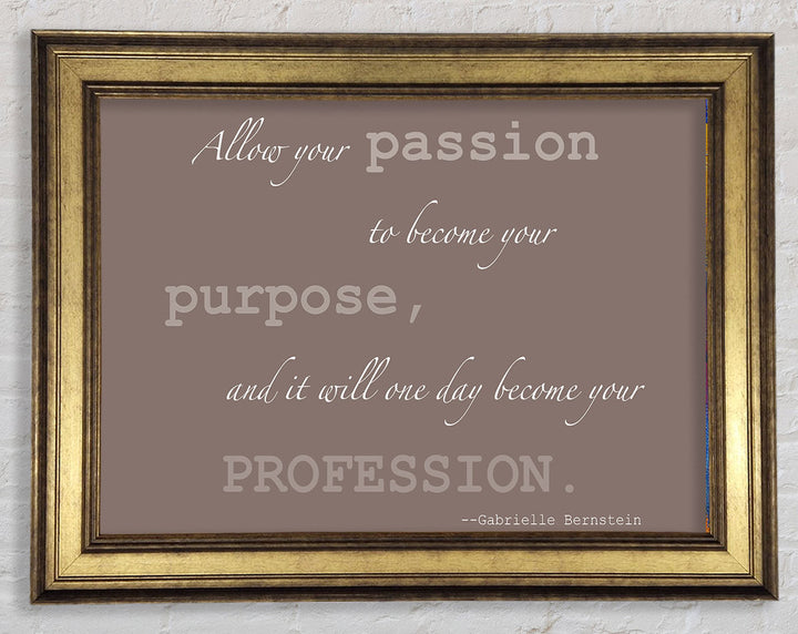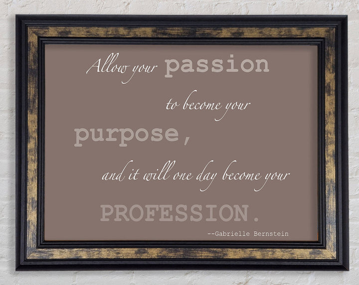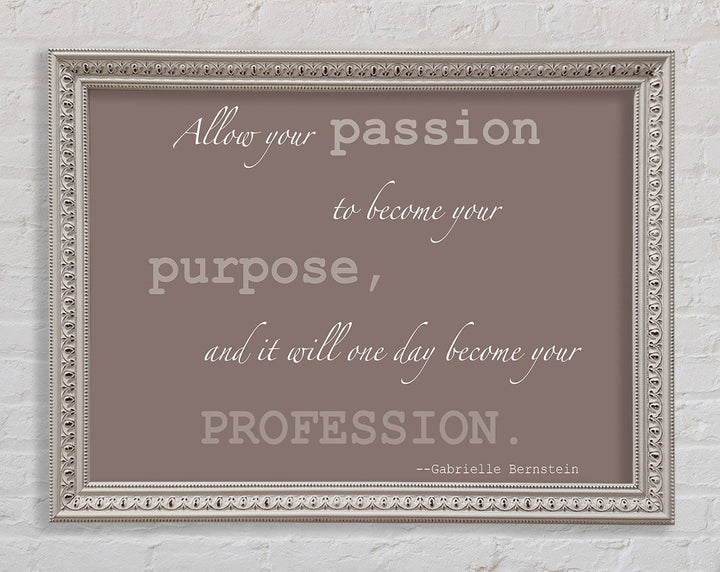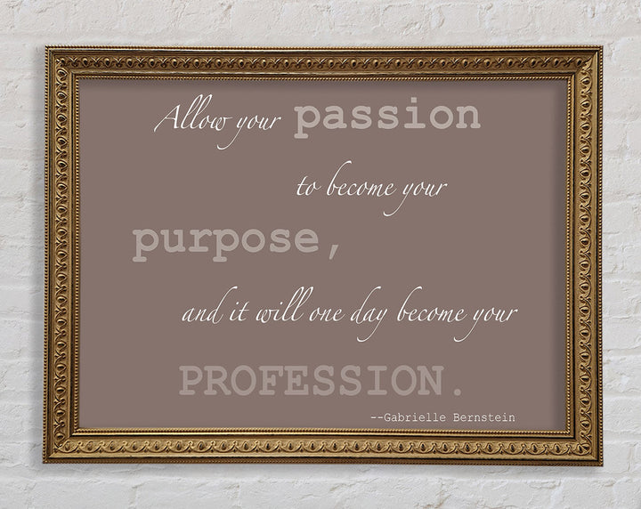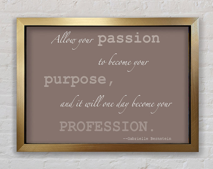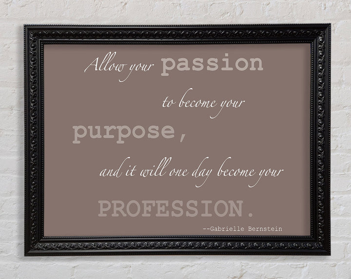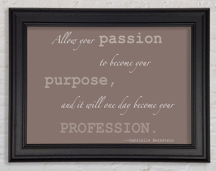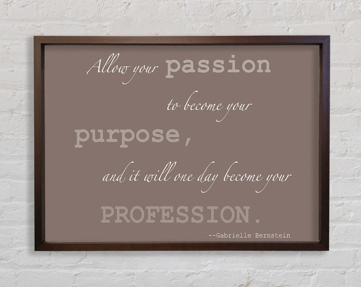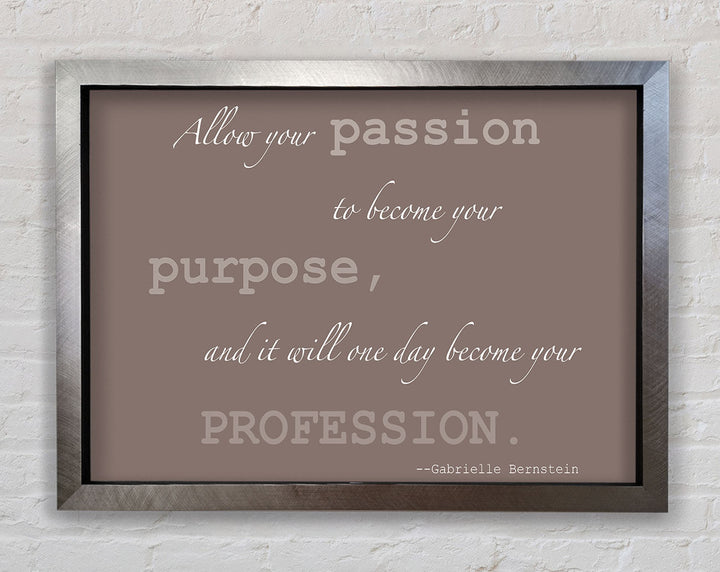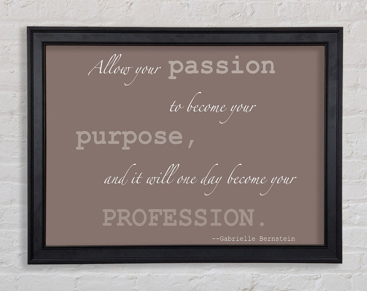 Motivationszitat „Allow Your Passion“ von Gabrielle Bernstein. Beige gerahmter Druck, in mehreren Rahmenfarben erhältlich. Fertig zum Aufhängen aus der Schachtel und handgefertigt im Vereinigten Königreich.