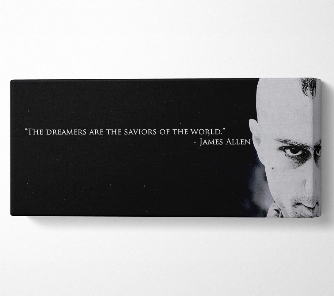 Motivierendes Zitat „The Dreamers“ von James Allen auf Leinwand, gedruckt auf beschichteter Polyester-Leinwand. Auf einem 44 mm großen Kastenrahmen montiert, fertig zum Aufhängen.