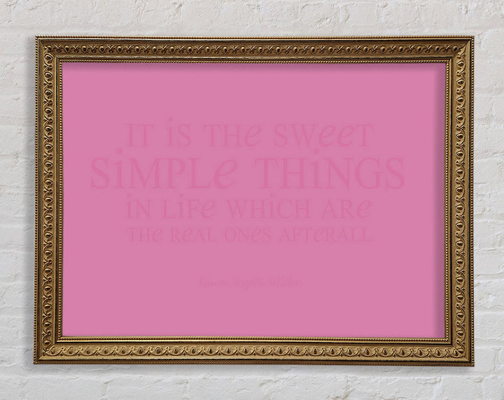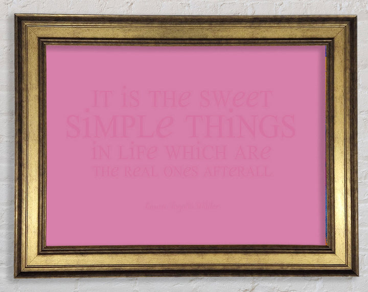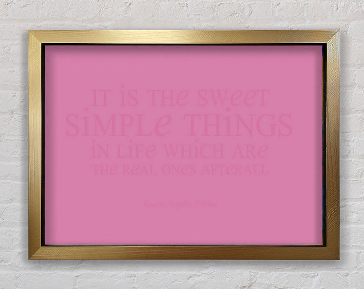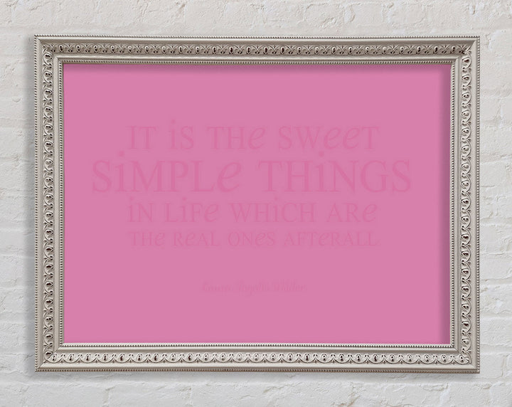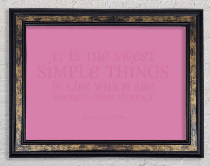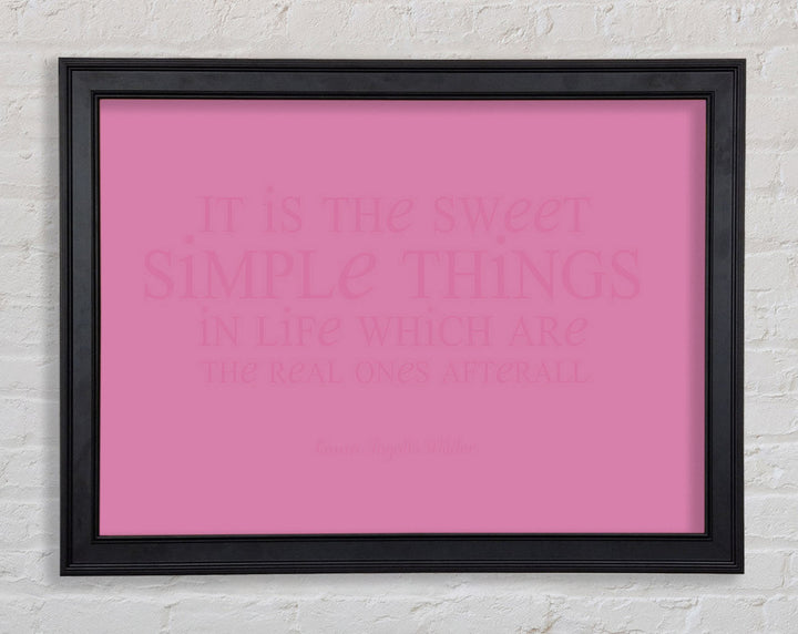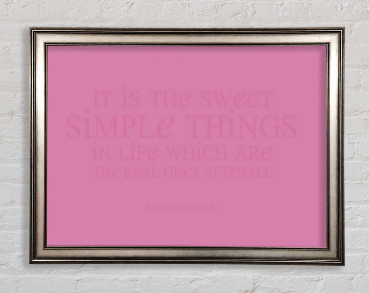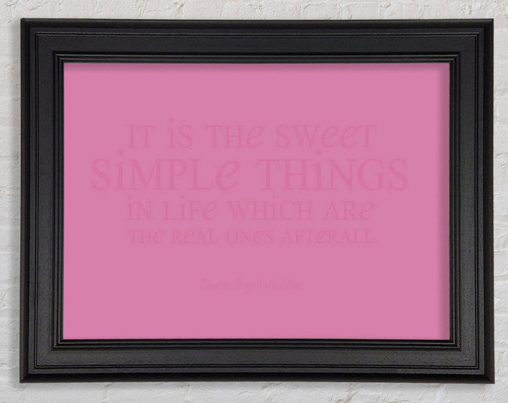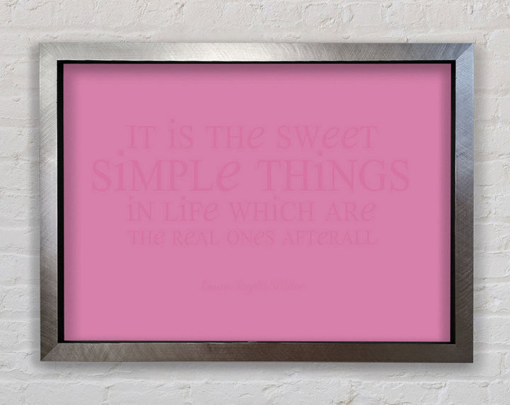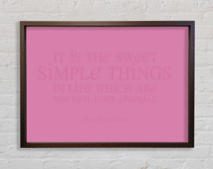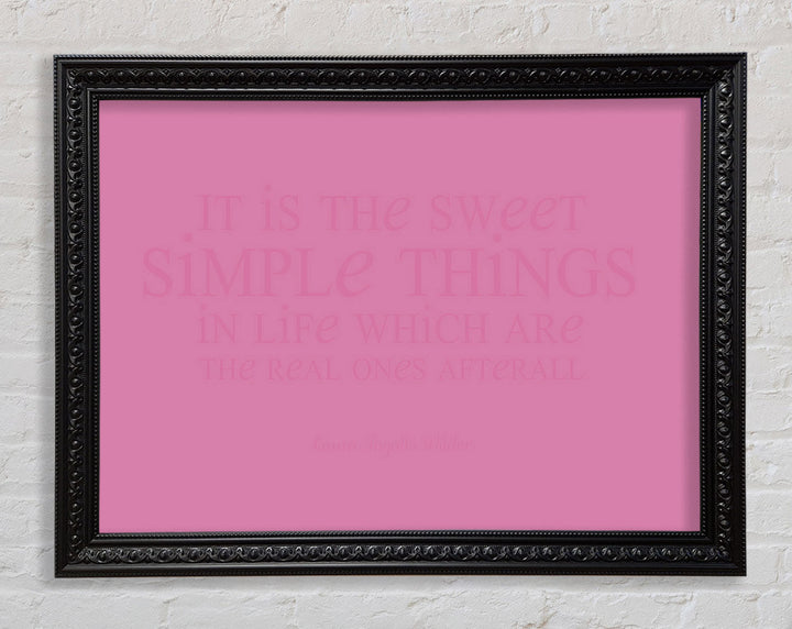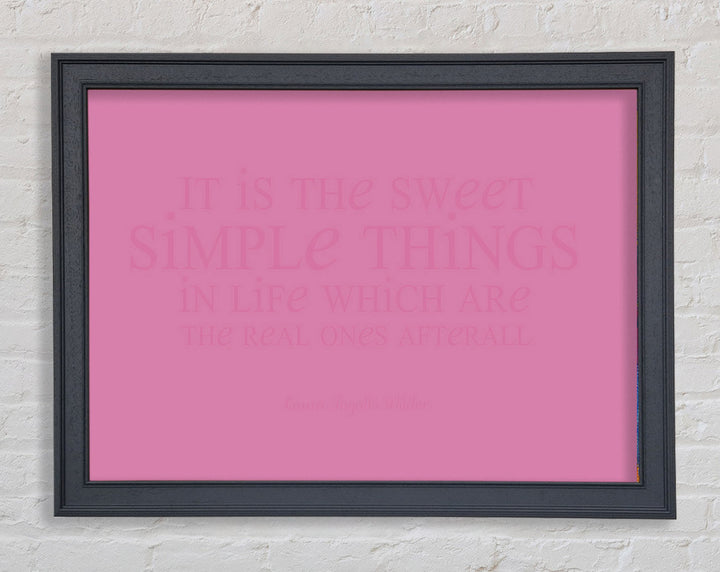 Motivierendes Zitat „It Is The Sweet Simple Things“ von Laura Wilder. Rosa gerahmter Druck, in mehreren Rahmenfarben erhältlich. Fertig zum Aufhängen aus der Schachtel und handgefertigt im Vereinigten Königreich.