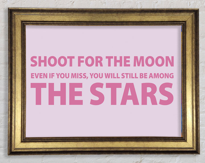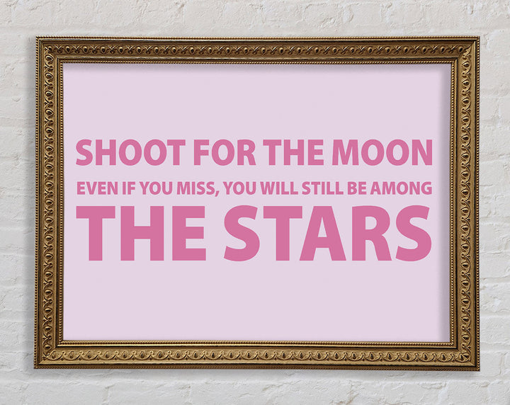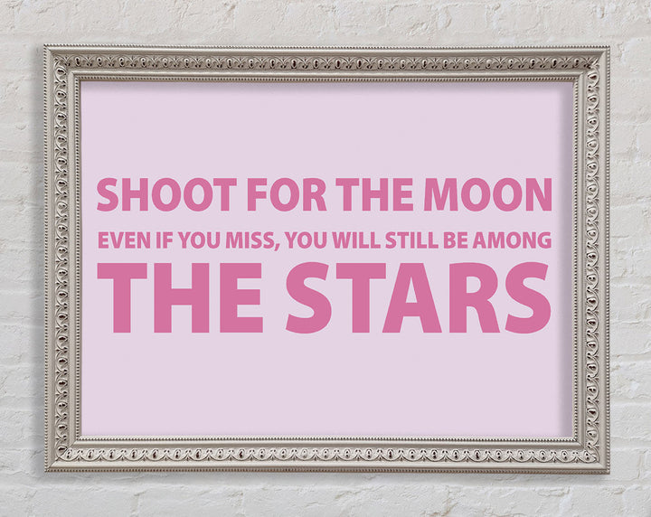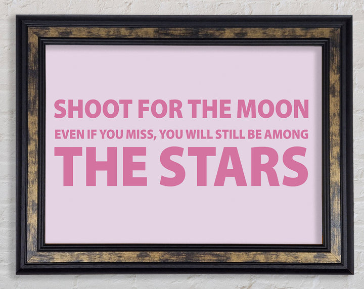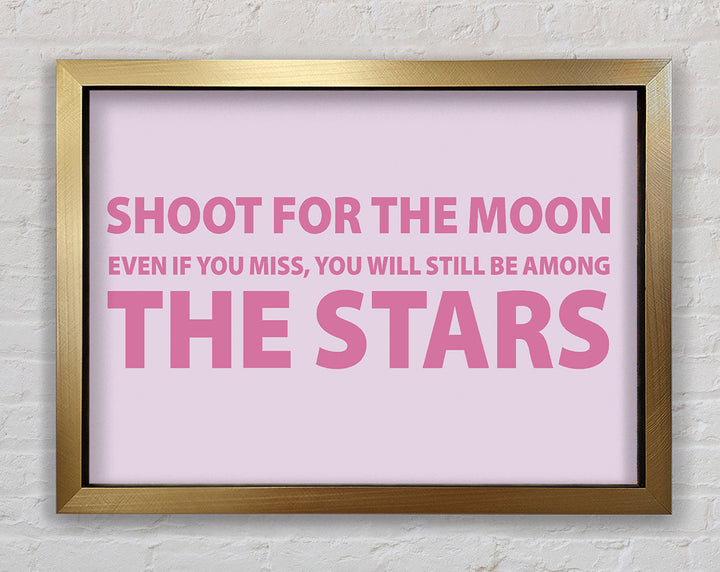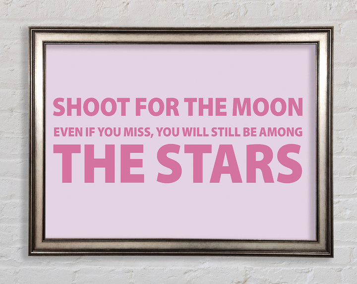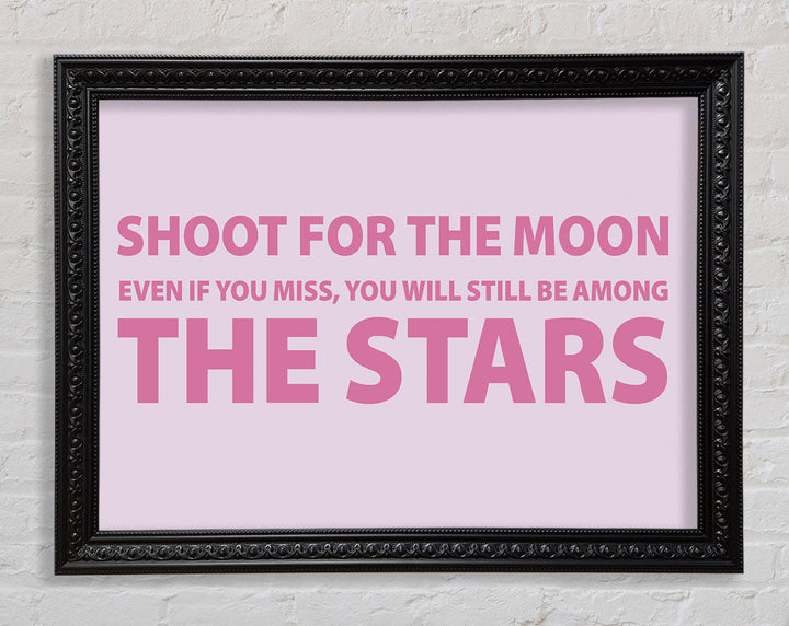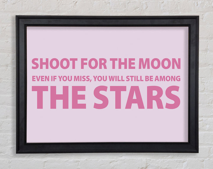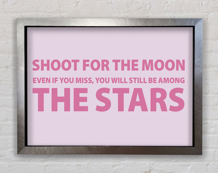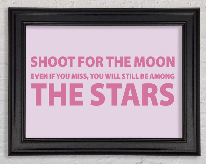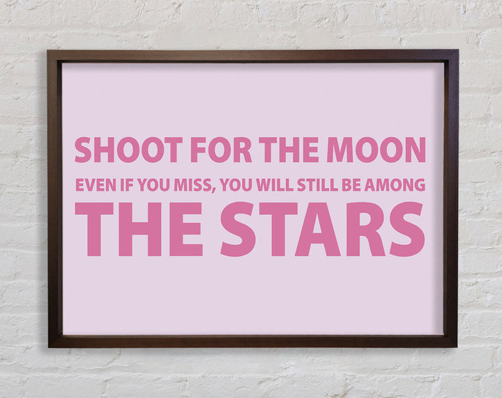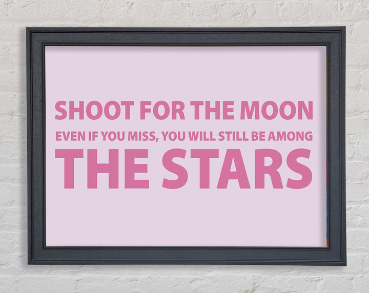 Motivierender Zitatdruck „Shoot For The Moon Pink“ in rosa Rahmen, in mehreren Rahmenfarben erhältlich. Fertig zum Aufhängen aus der Schachtel und handgefertigt im Vereinigten Königreich.