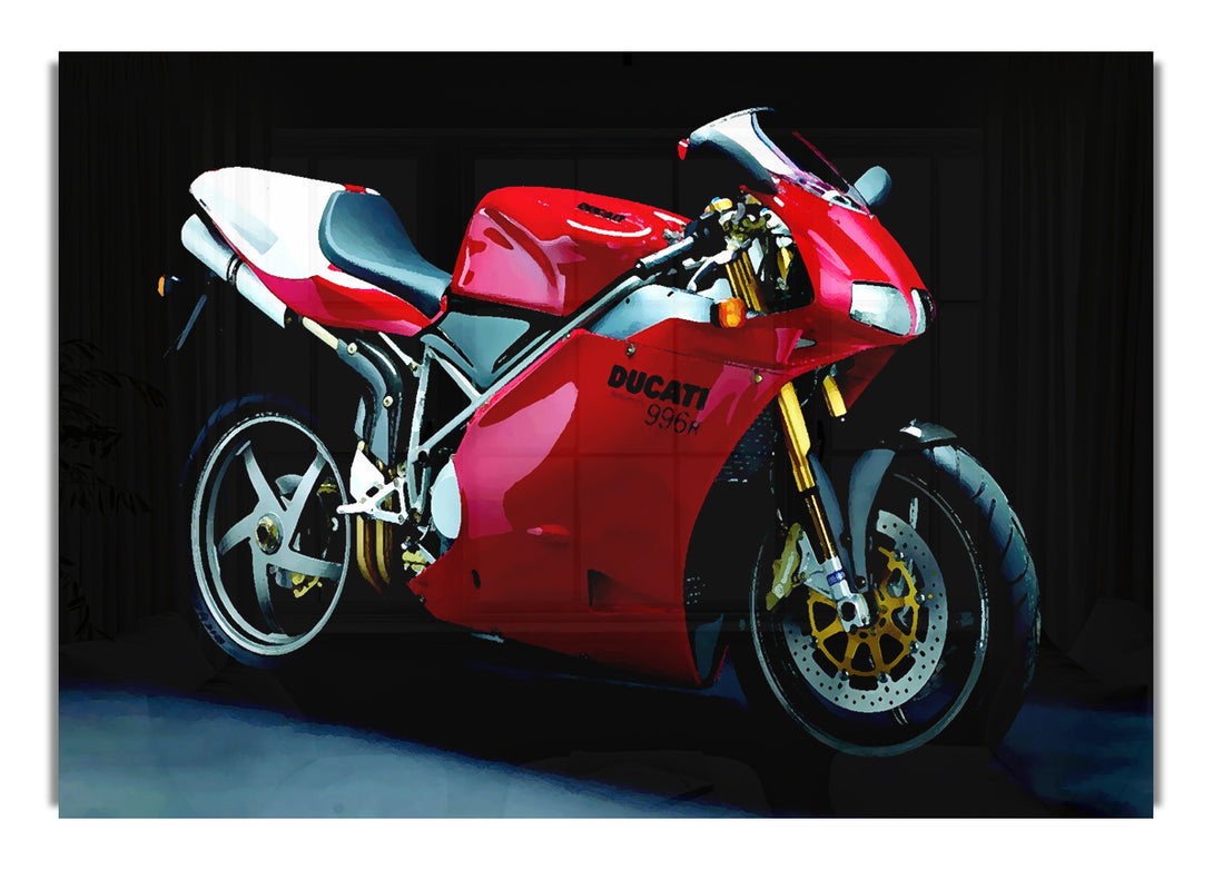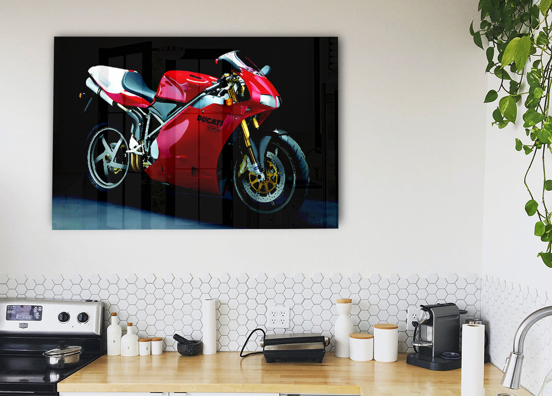 Motorrad-Ducati-Acryldruck, UV-gedruckt auf 5 mm dickes Acrylglas. Wird mit allem geliefert, was Sie zum Aufhängen an die Wand brauchen.