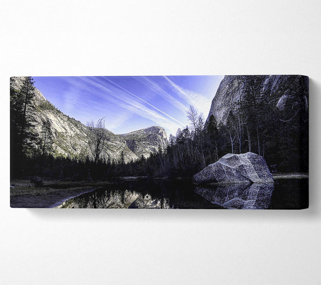 Leinwandbild „Mountain Lake Reflections“, gedruckt auf beschichteter Polyester-Leinwand. Auf einem 44 mm großen Kastenrahmen montiert, fertig zum Aufhängen.