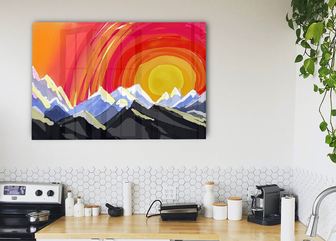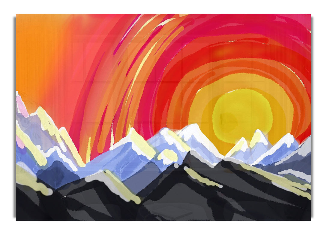 Acryldruck „Mountain Peak Sun“, UV-gedruckt auf 5 mm dickes Acrylglas. Wird mit allem geliefert, was Sie zum Aufhängen an die Wand benötigen.