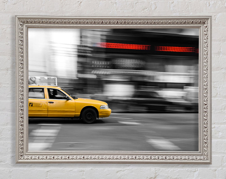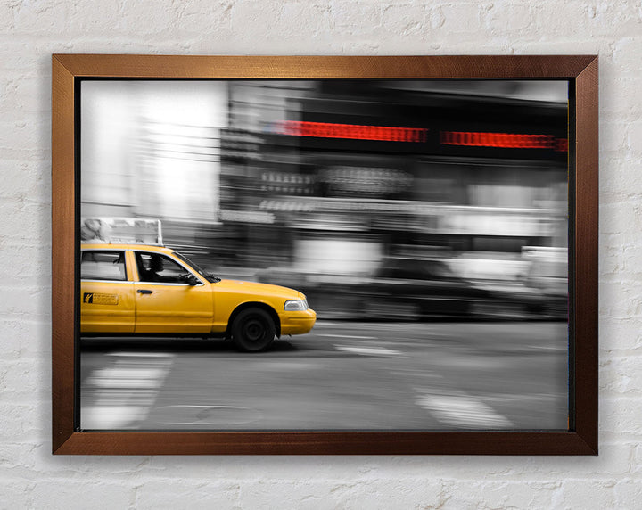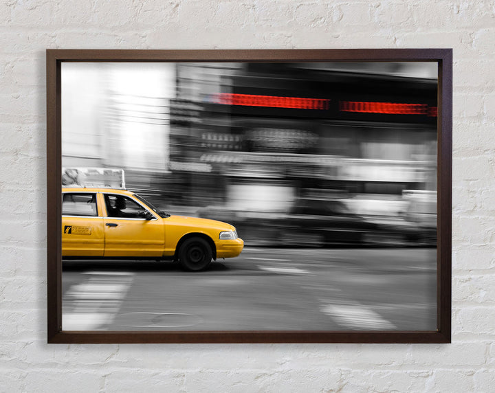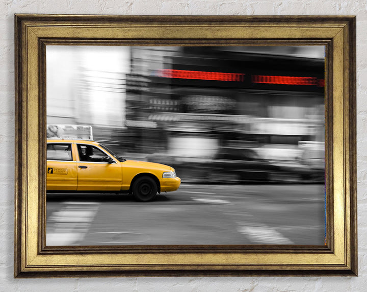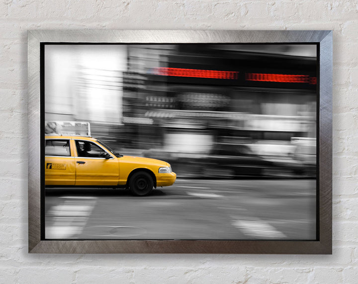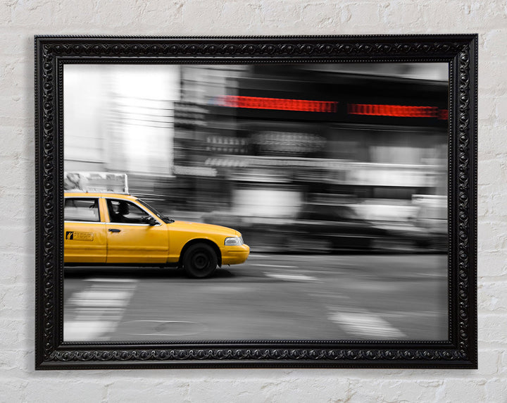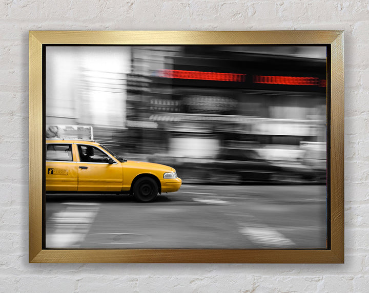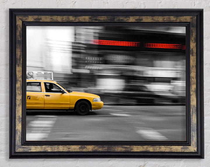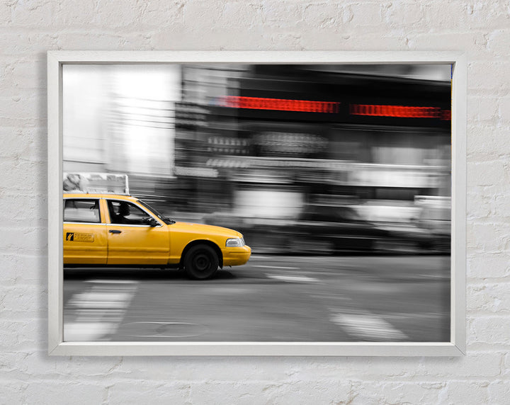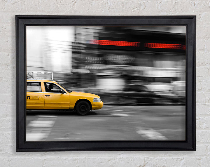 Gerahmter Druck „Movement Of The Yellow Cab“, erhältlich in mehreren Rahmenfarben. Fertig zum Aufhängen aus der Schachtel und handgefertigt im Vereinigten Königreich.