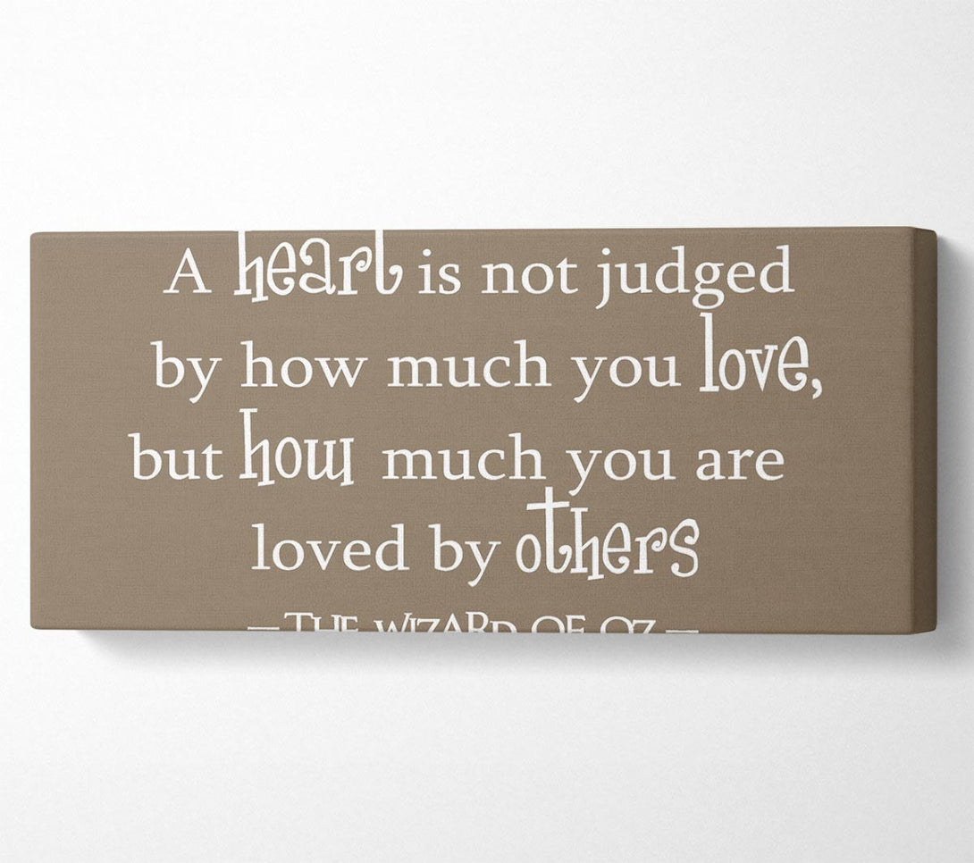 Filmzitat „Der Zauberer von Oz: Ein Herz wird nicht beurteilt“ Beige Leinwand, gedruckt auf beschichteter Polyester-Leinwand. Auf einem 44 mm großen Kastenrahmen montiert, fertig zum Aufhängen.