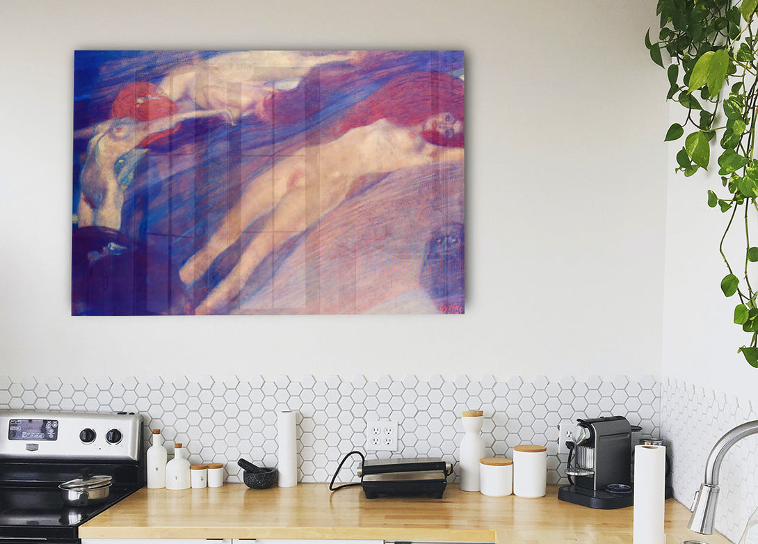 Acryldruck „Moving Water“ von Klimt, UV-gedruckt auf 5 mm dickes Acrylglas. Wird mit allem geliefert, was Sie zum Aufhängen an die Wand brauchen.