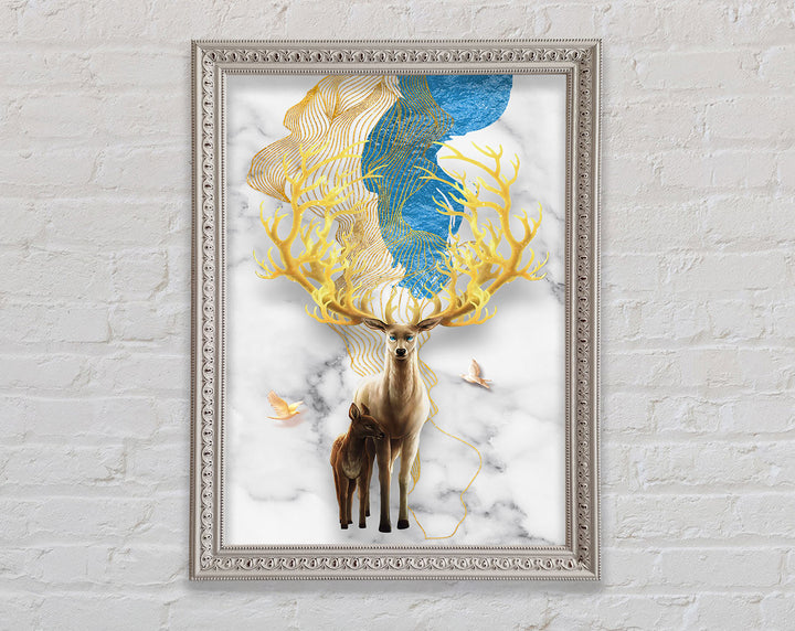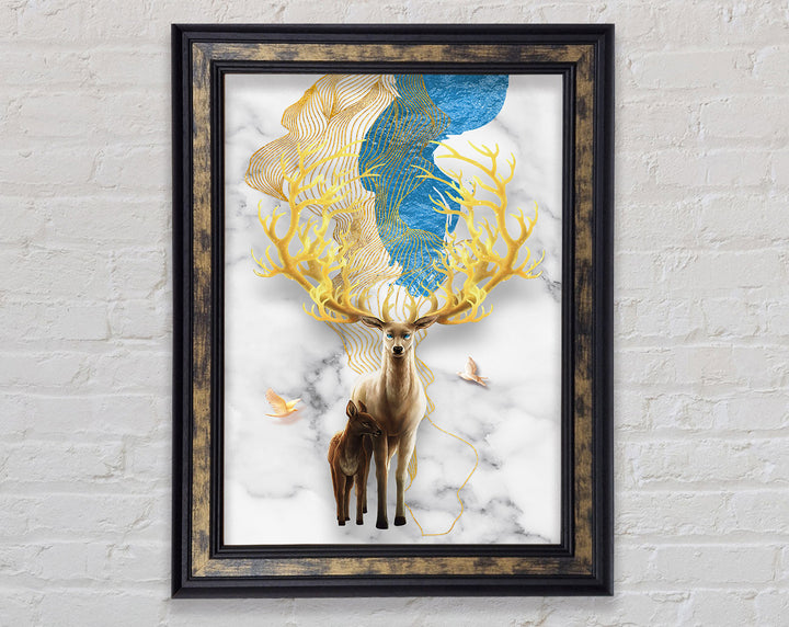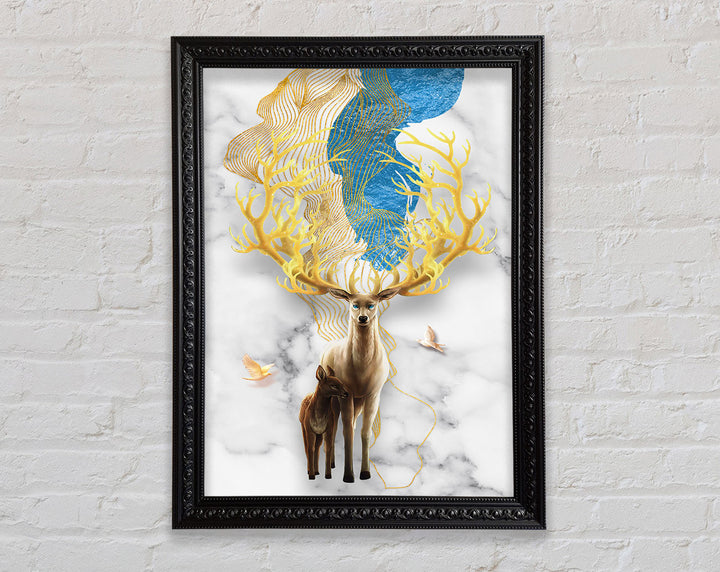 Bring the beauty of nature into your home with our Mum And Young Kid Deer Framed Print. This stunning piece of framed art features a tender moment between a mother deer and her young, capturing the essence of wildlife. Available in six sizes, from small to oversized, this print can fit any space perfectly. Choose from a variety of colours to match your décor and enjoy the convenience of it being ready to hang right out of the box. Each piece is handmade in the United Kingdom, ensuring top-notch quality and craftsmanship. Add a touch of elegance and warmth to your living space with this charming framed print.