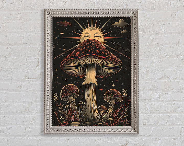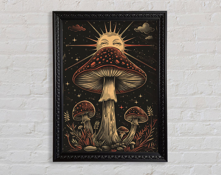 Introducing the Mushroom and Moon Framed Print, a stunning piece of framed art that brings the magic of nature and celestial beauty into your home. This exquisite artwork is available in six sizes, from small to oversized, making it perfect for any space. Each print features vibrant colours, adding a touch of elegance and whimsy to your decor. Handmade in the United Kingdom, this framed art guarantees exceptional quality and craftsmanship. The print comes ready to hang, making it effortless to display. Enhance your living space with the unique charm of the Mushroom and Moon Framed Print, and let its enchanting design captivate your senses.