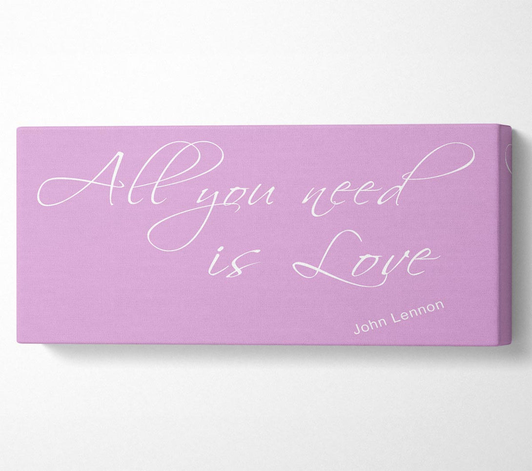 Musikzitat „All You Need Is Love 2“ auf rosa Leinwand, gedruckt auf beschichteter Polyester-Leinwand. Auf einem 44 mm großen Kastenrahmen montiert, fertig zum Aufhängen.