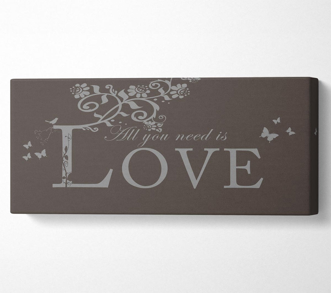 Musikzitat „All You Need Is Love Chocolate“ auf Leinwand, gedruckt auf beschichteter Polyester-Leinwand. Auf einem 44 mm großen Kastenrahmen montiert, fertig zum Aufhängen.