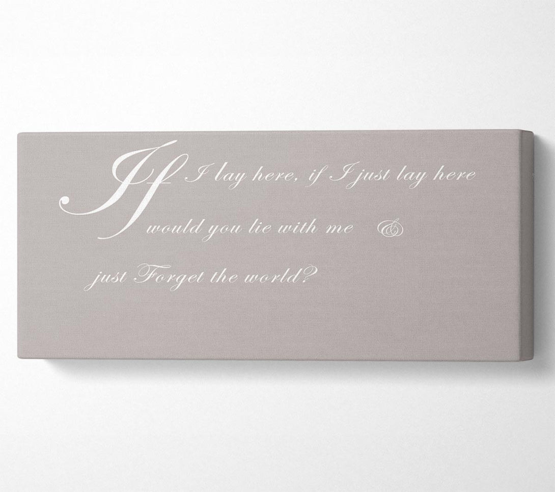 Musikzitat „If I Lay Here If I Just Snow Patrol 2“ Beige Leinwand, gedruckt auf beschichteter Polyester-Leinwand. Auf einem 44 mm großen Kastenrahmen montiert, fertig zum Aufhängen.