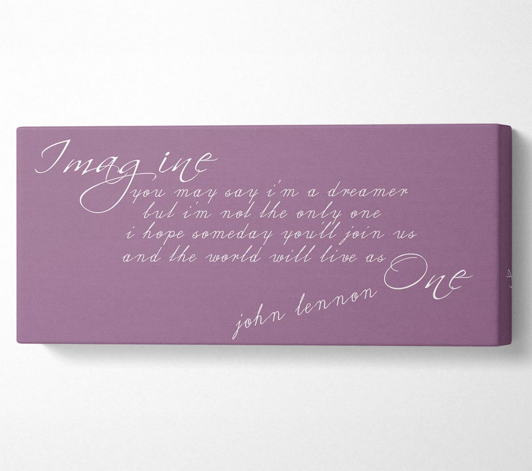 Musikzitat „Imagine“ von John Lennon in Dusty Pink, gedruckt auf beschichteter Polyester-Leinwand. Auf einem 44 mm großen Kastenrahmen montiert, fertig zum Aufhängen.