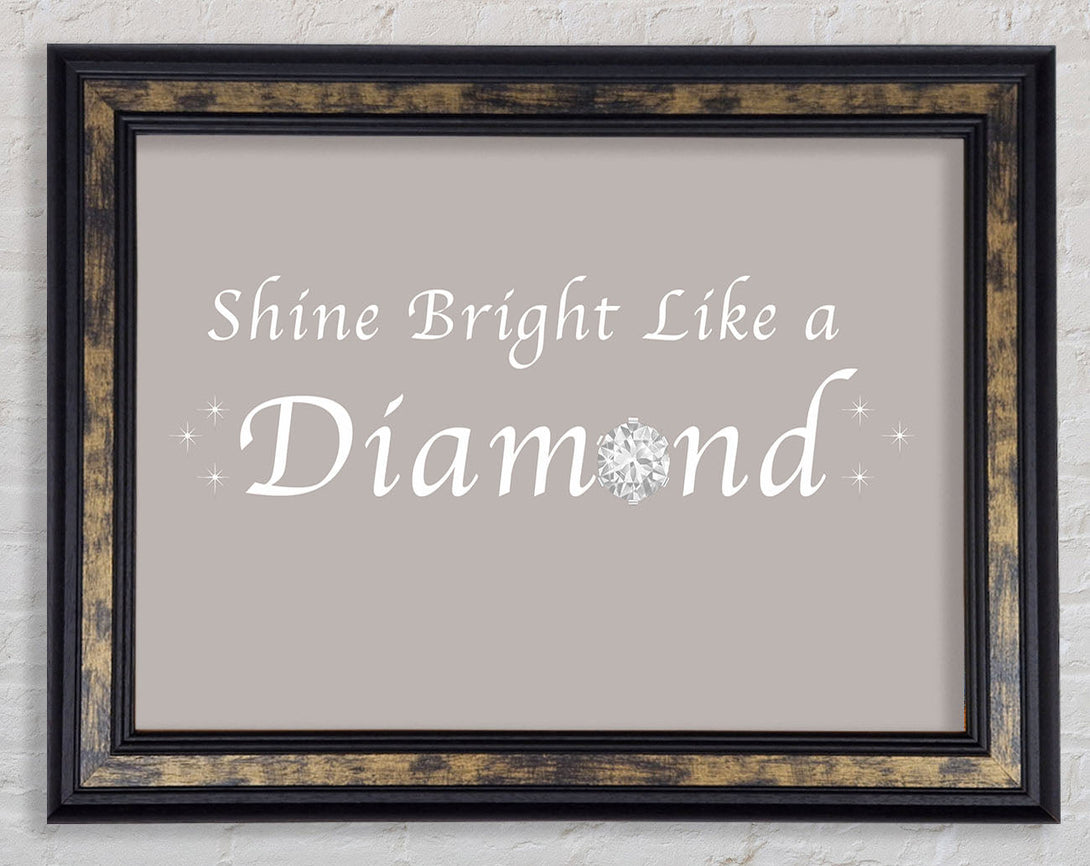 Music Quote Shine Bright Like A Diamond Rihanna Beige Framed Print