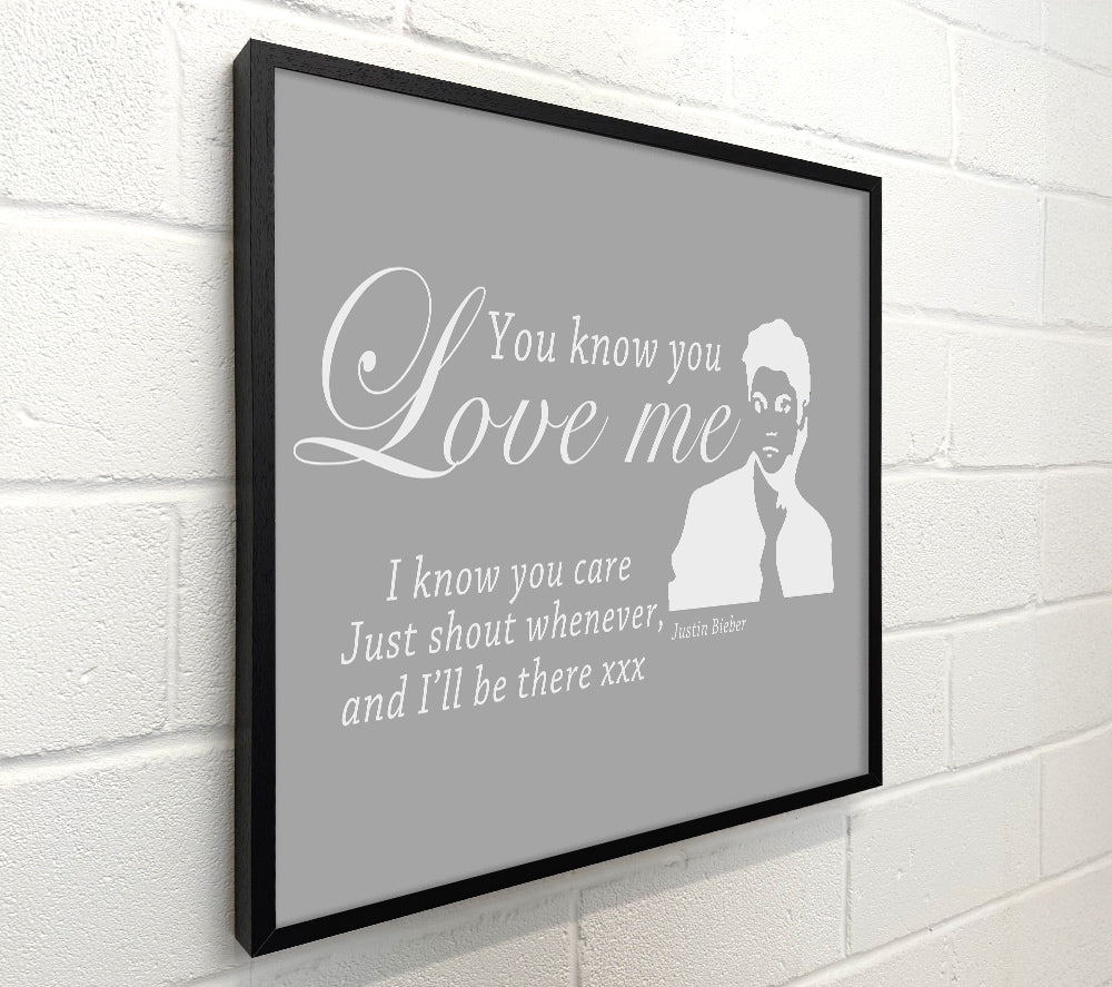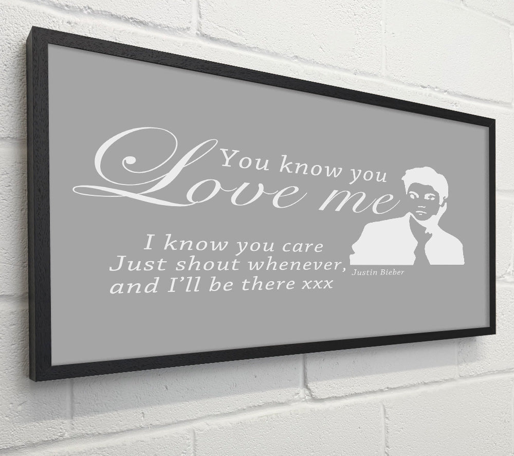 Music Quote You Know You Love Me Justin Bieber Grey White