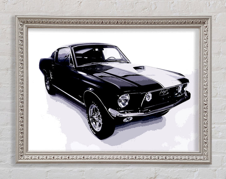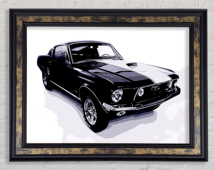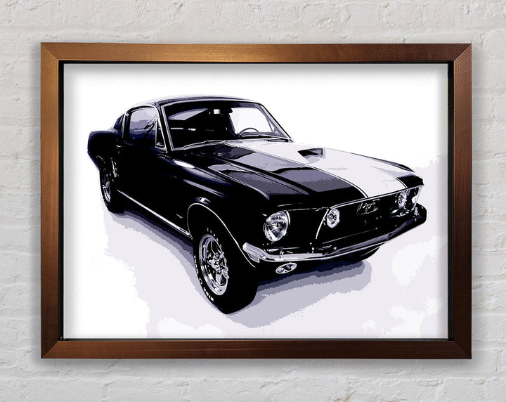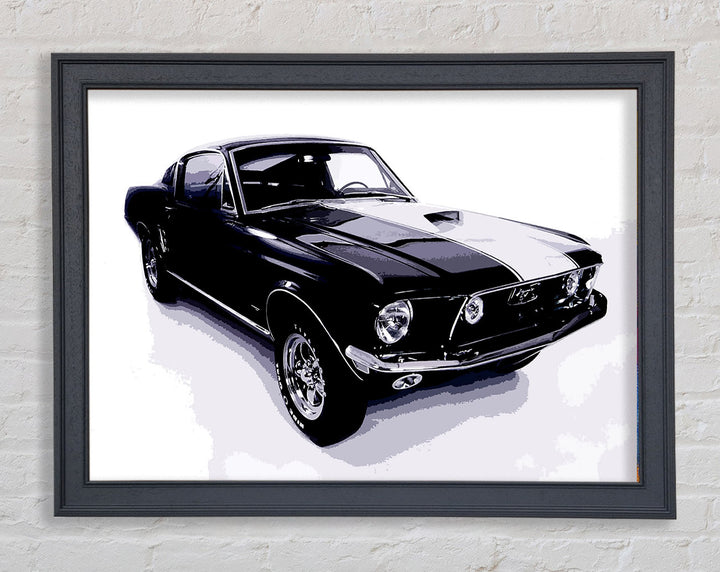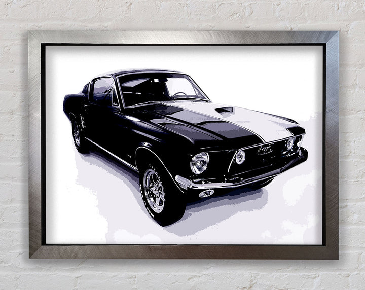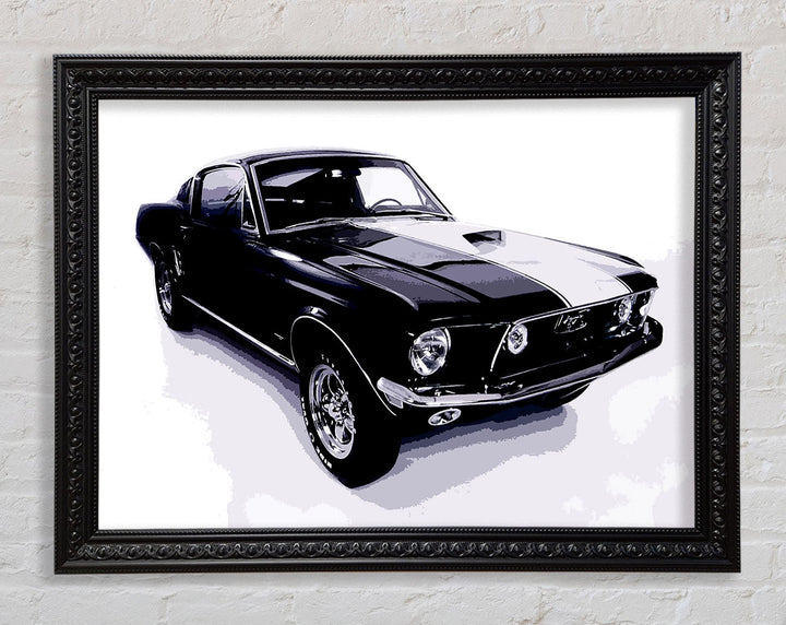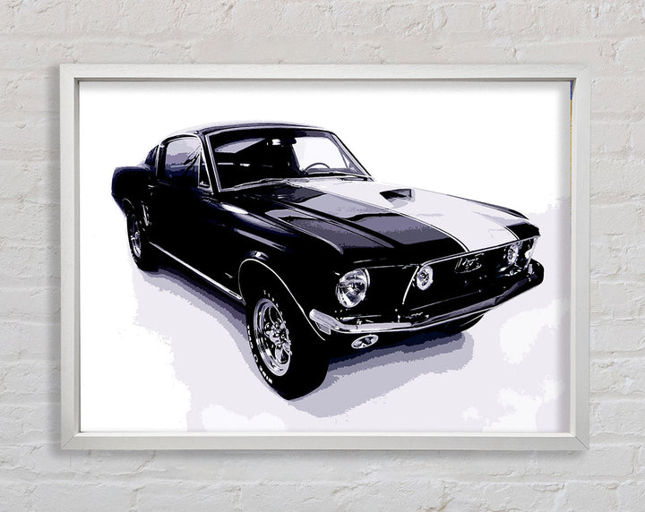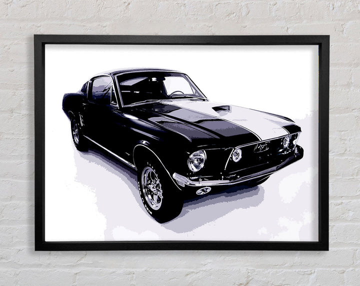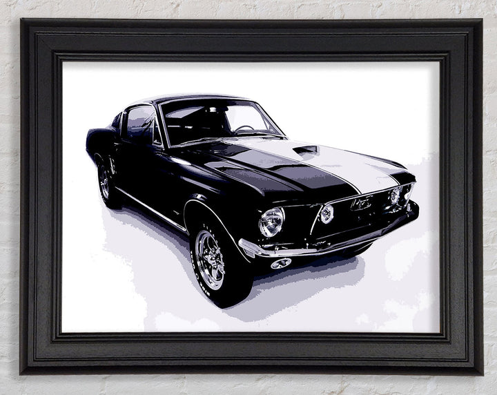 Gerahmter Druck „Mustang 67 B n W“, in mehreren Rahmenfarben erhältlich. Fertig zum Aufhängen aus der Schachtel und handgefertigt im Vereinigten Königreich.