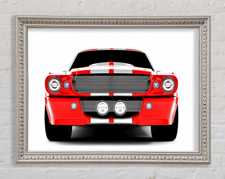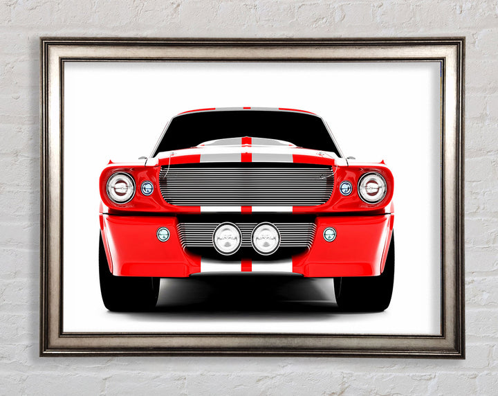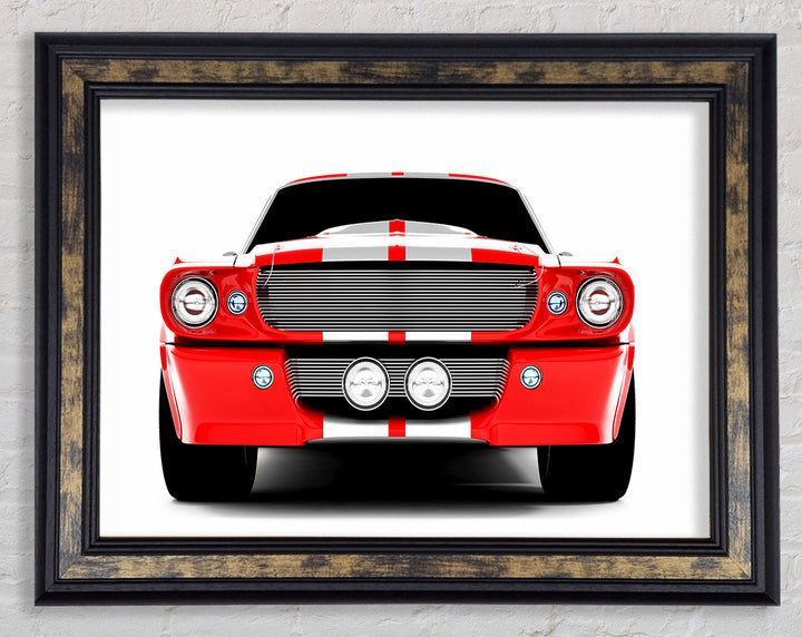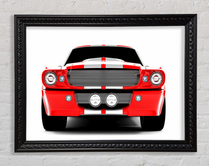 Gerahmter Druck „Mustang Red Front Grill“, erhältlich in mehreren Rahmenfarben. Fertig zum Aufhängen aus der Schachtel und handgefertigt im Vereinigten Königreich.