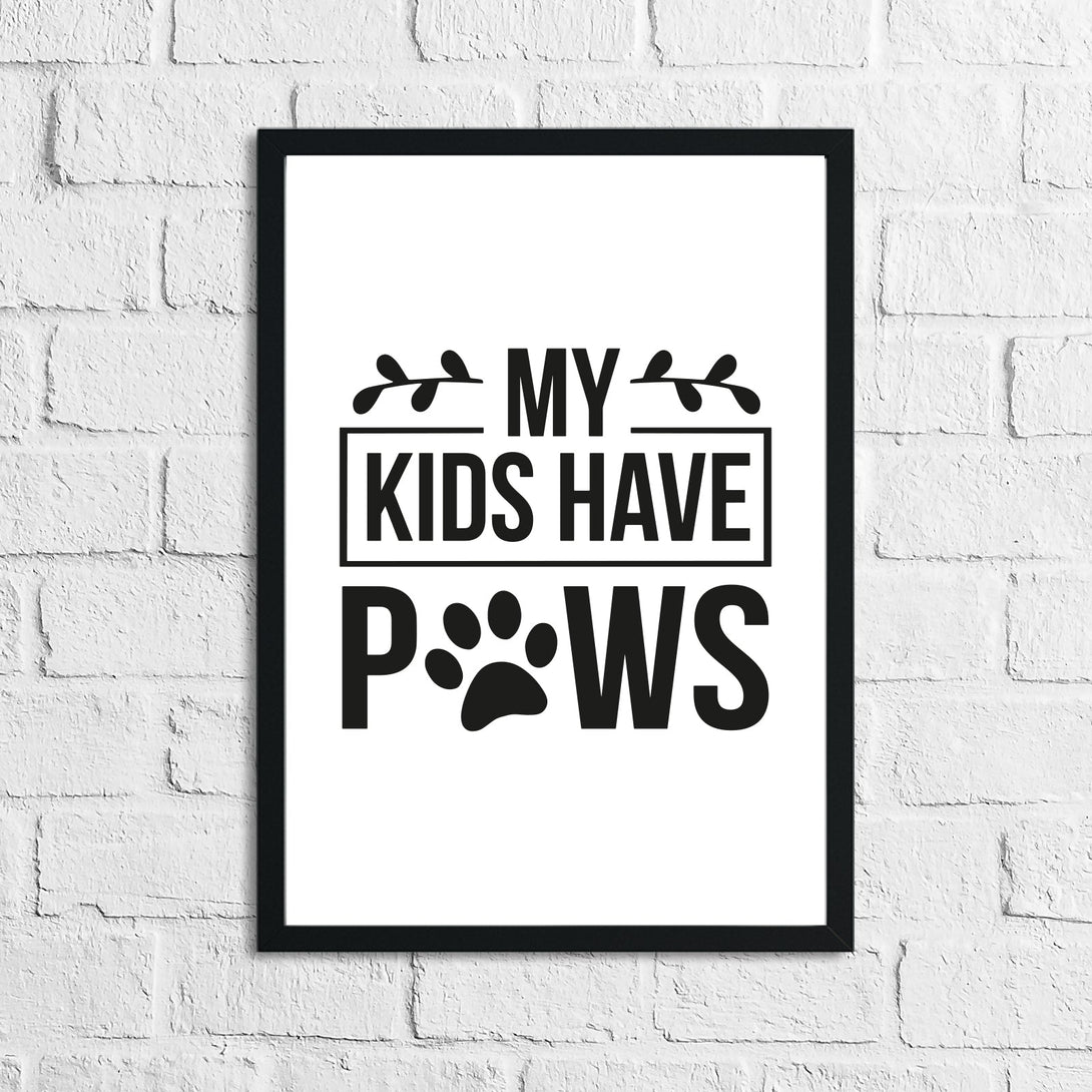 My Kids Have Paws Animal Lover Simple House Wall Decor Print