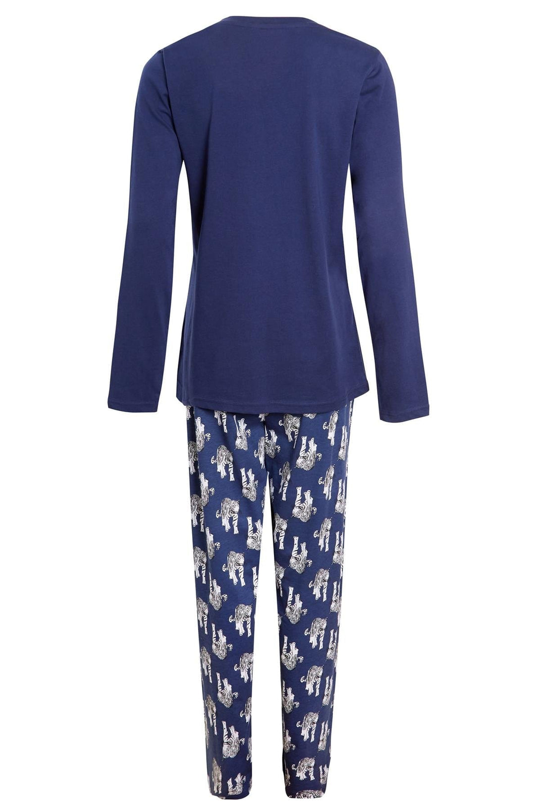 Women's Navy Tiger Jersey Cotton PJ, Ladies Pyjama Set