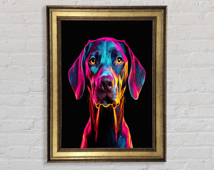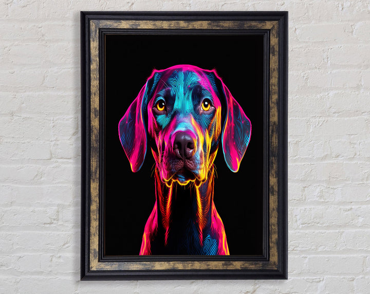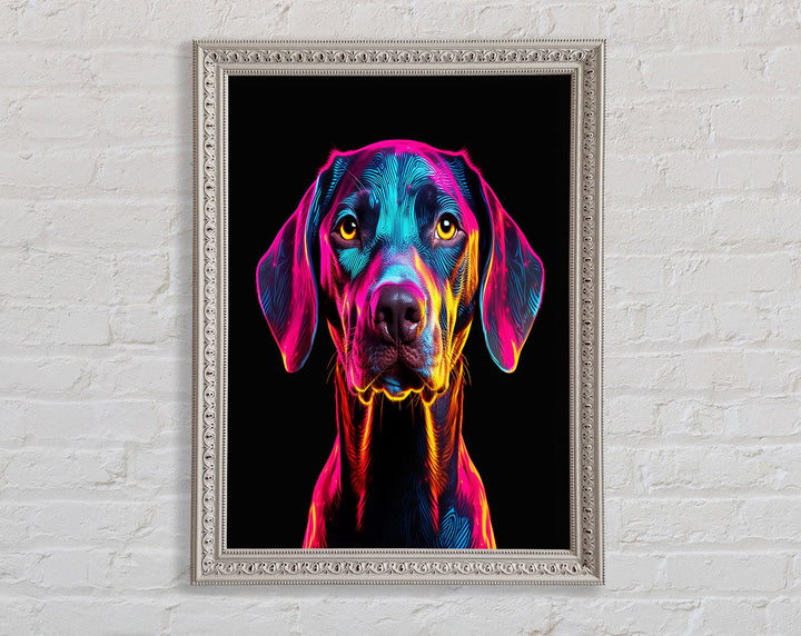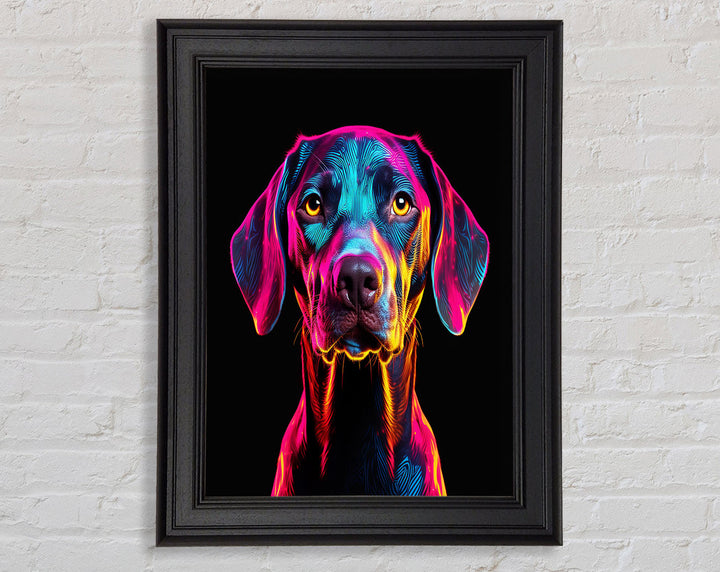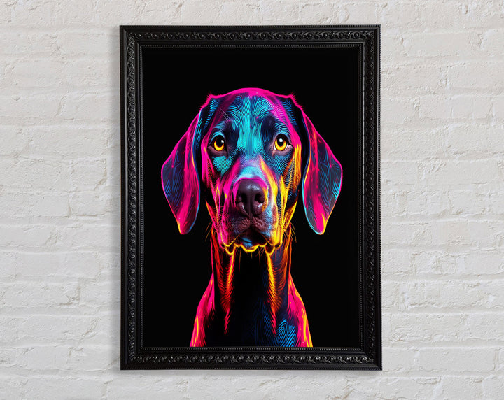 Brighten up your space with the Neon Dog Framed Print, a stunning piece of framed art that will captivate any room. This vibrant print features a playful dog in bold neon colors, making it a fun and eye-catching addition to your decor. Available in six sizes, from small to oversized, you can find the perfect fit for any wall. Choose from a variety of colors to match your style. Each print is handmade in the United Kingdom, ensuring high quality and craftsmanship. Ready to hang, this framed art piece is easy to install and will instantly transform your home or office.