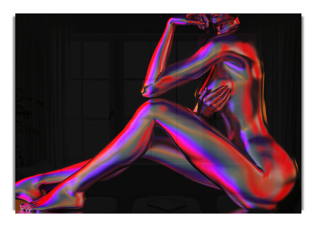 Acryldruck „Neon Naked Body“, UV-gedruckt auf 5 mm dickes Acrylglas. Wird mit allem geliefert, was Sie zum Aufhängen an die Wand brauchen.