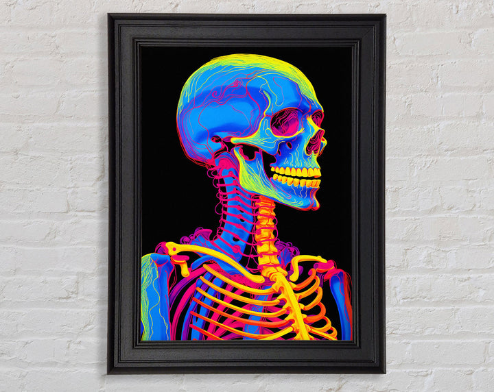 Brighten up your space with the Neon Skeleton Skull Black Framed Print, a striking piece of framed art. Available in six sizes, from small to oversized, this eye-catching print fits any room perfectly. Choose from a variety of vibrant colors to match your style. Each print is ready to hang, making decorating easy and hassle-free. Handmade in the United Kingdom, this framed art showcases exceptional craftsmanship and quality. The sleek black frame adds a modern touch, while the neon skeleton skull design brings a unique and edgy vibe. Transform your home or office with this bold and artistic statement piece.