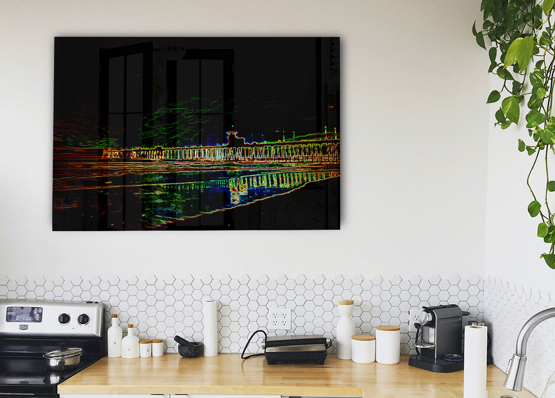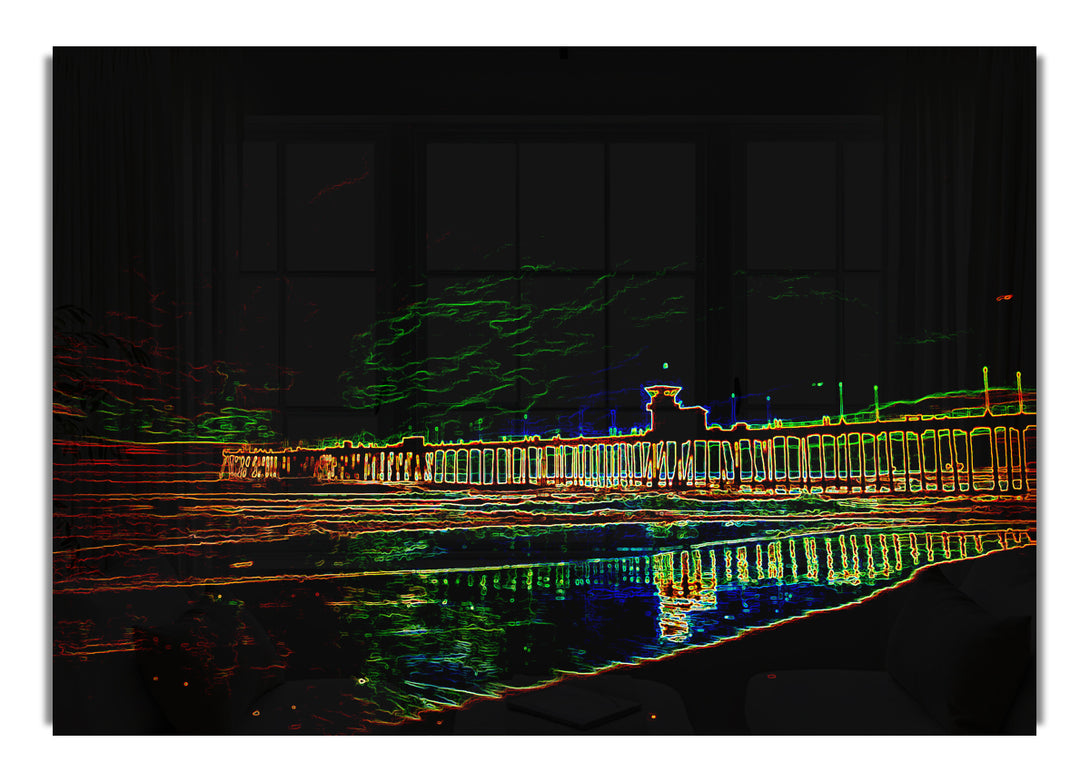 Acryldruck „Night Pier“, UV-gedruckt auf 5 mm dickes Acrylglas. Wird mit allem geliefert, was Sie zum Aufhängen an die Wand benötigen.