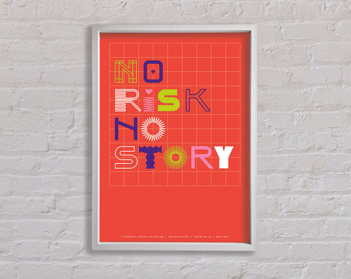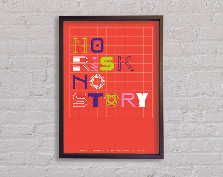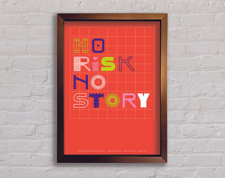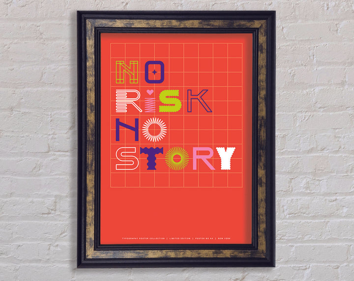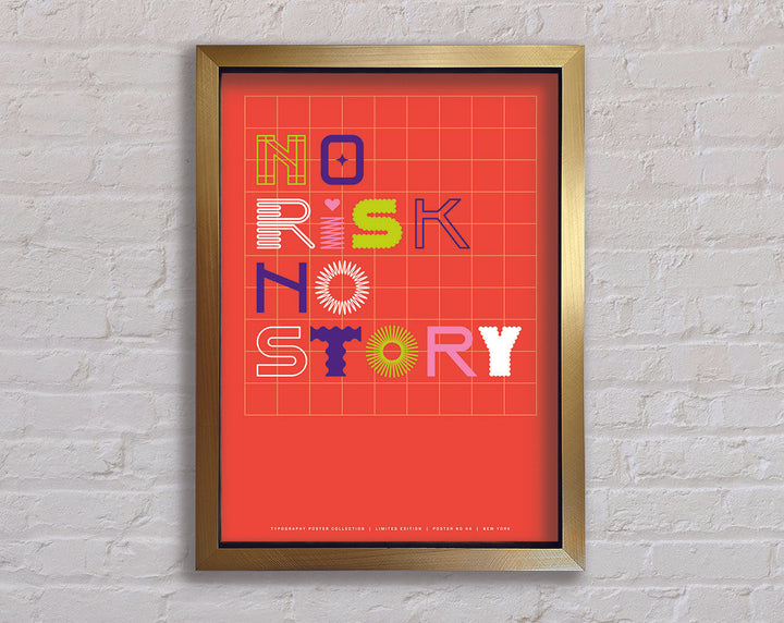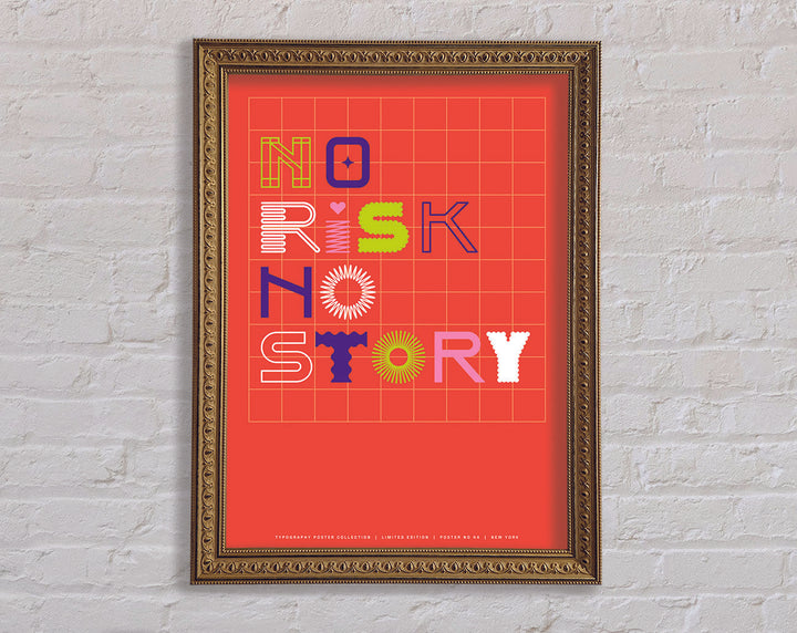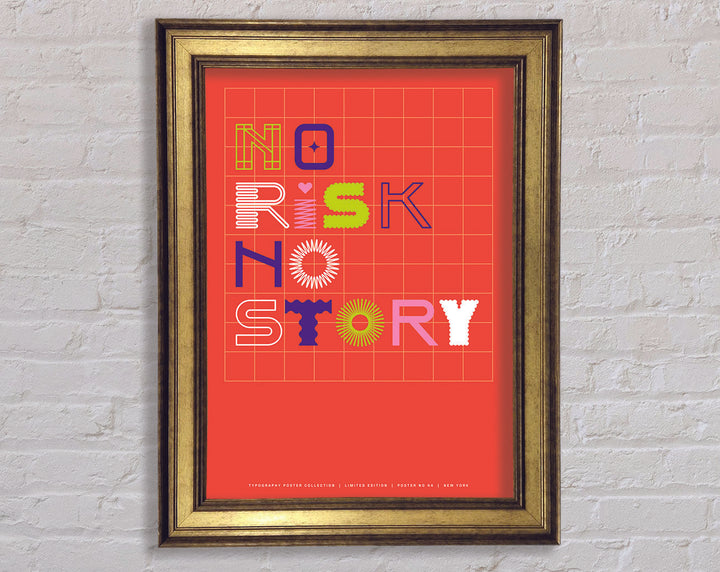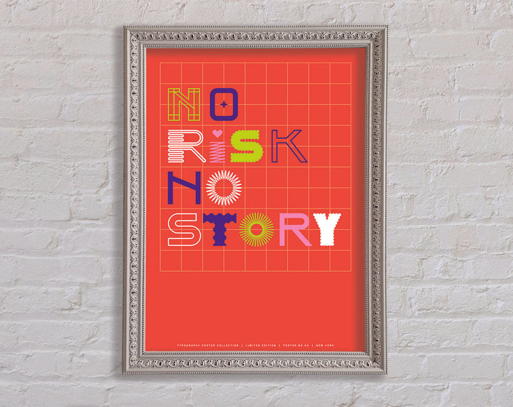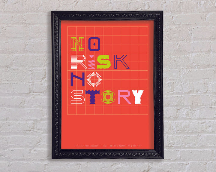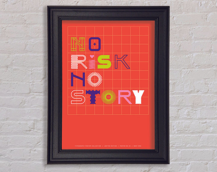 Introducing the No Risk No Story Framed Print, a stunning piece of framed art that will add inspiration to any space. This unique artwork is available in six sizes, from small to oversized, ensuring a perfect fit for any room. Choose from a variety of colors to match your decor seamlessly. Each print is handmade in the United Kingdom, guaranteeing exceptional craftsmanship and quality. Ready to hang straight out of the box, the No Risk No Story Framed Print offers both beauty and convenience. Transform your home or office with this motivational masterpiece that speaks to the adventurer in everyone.