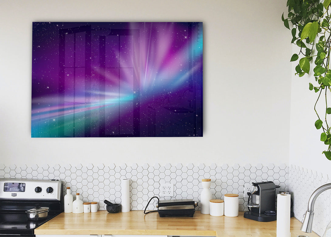 Acryldruck „Northern Light Skies 1“, UV-gedruckt auf 5 mm dickes Acrylglas. Wird mit allem geliefert, was Sie zum Aufhängen an die Wand brauchen.