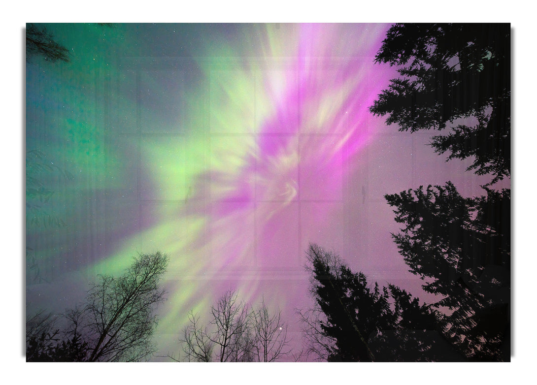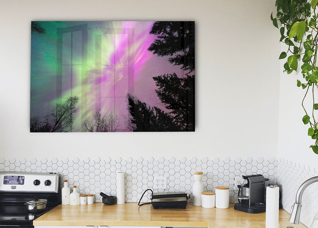 Acryldruck „Northern Light Skies 2“, UV-gedruckt auf 5 mm dickes Acrylglas. Wird mit allem geliefert, was Sie zum Aufhängen an die Wand brauchen.
