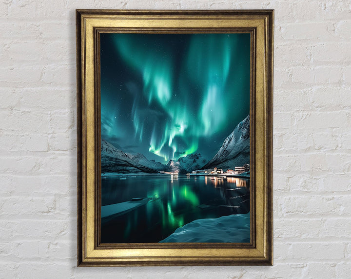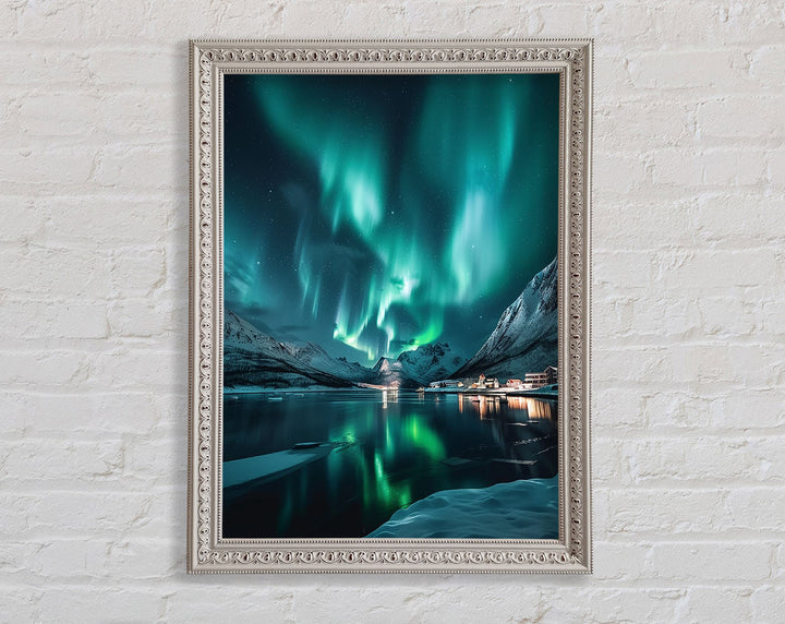 Capture the magic of the Northern Lights with our Northern Lights Lake Framed Print. This stunning piece of framed art showcases the breathtaking beauty of the Aurora Borealis reflecting over a serene lake. Available in six sizes, from small to oversized, it’s perfect for any space in your home or office. Choose from a variety of colors to match your decor. Each print is handmade in the United Kingdom, ensuring top-notch quality and craftsmanship. Ready to hang upon arrival, this framed print offers a hassle-free way to elevate your interior design. Bring a touch of nature’s wonder into your living space today!