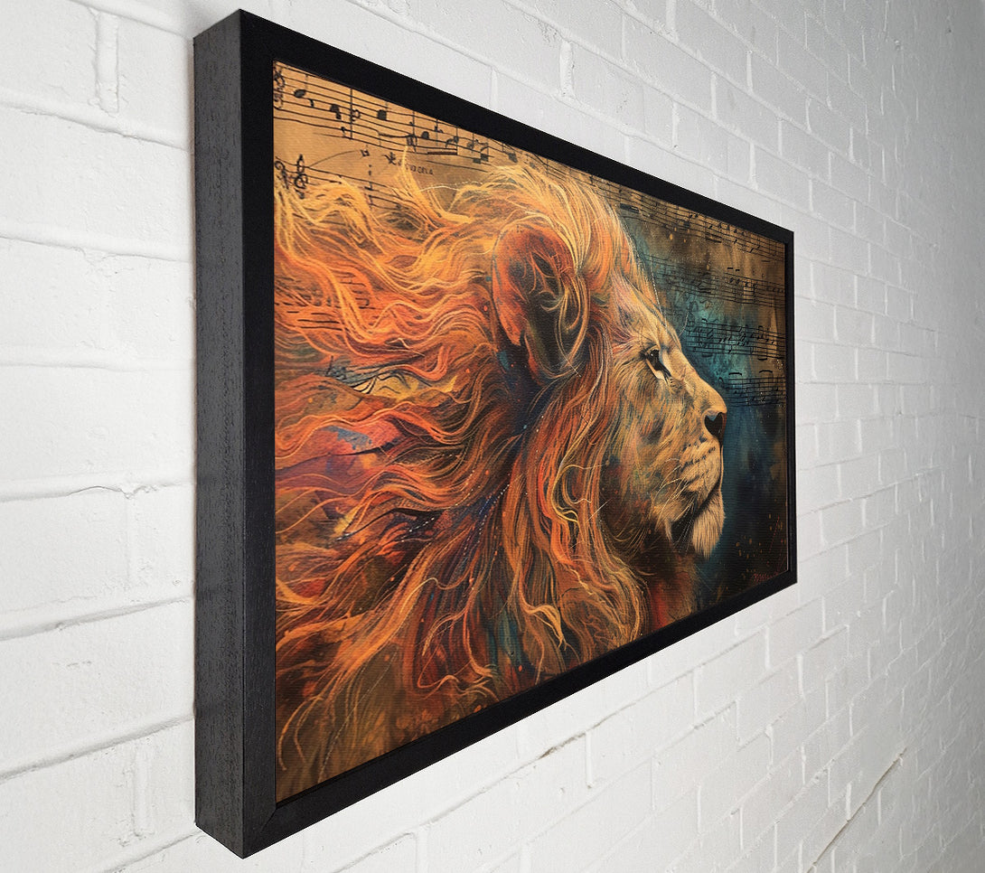 Discover the stunning Notation Lion Canvas Print, a perfect addition to any wall in your home or office. This striking piece features a majestic lion with musical notes, blending nature and art beautifully. Available in five sizes, from small to oversized, it fits any space perfectly. The high-quality canvas ensures durability and vivid colors, making the lion's powerful presence come to life. Easy to hang, this canvas print enhances your decor and sparks conversations. Ideal for animal lovers and music enthusiasts alike, the Notation Lion Canvas Print adds a unique touch to your wall, creating an inspiring and stylish atmosphere.
