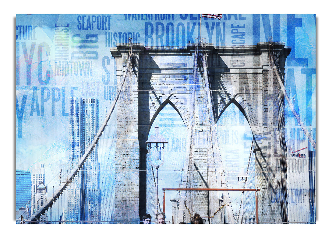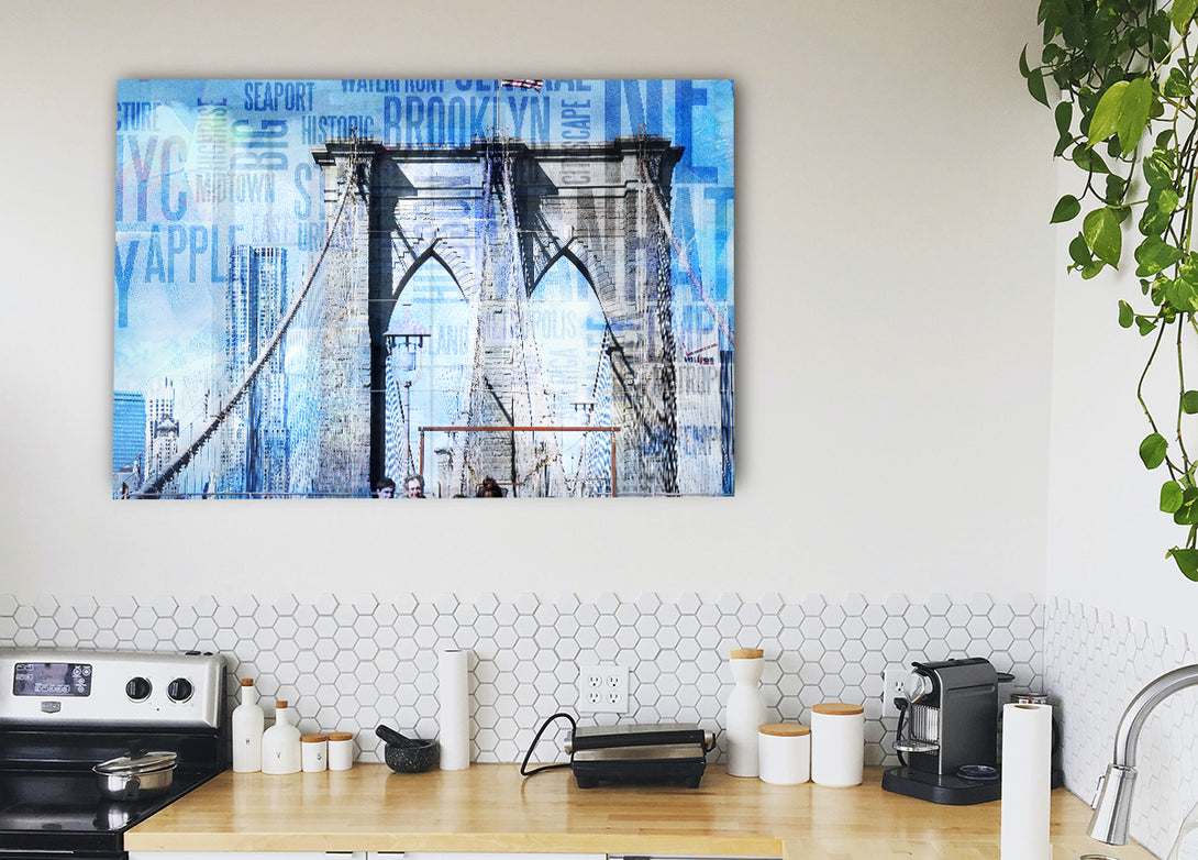 Acryldruck „NYC Brooklyn Bridge“, UV-gedruckt auf 5 mm dickes Acrylglas. Wird mit allem geliefert, was Sie zum Aufhängen an die Wand brauchen.