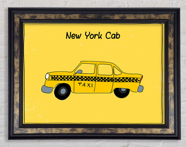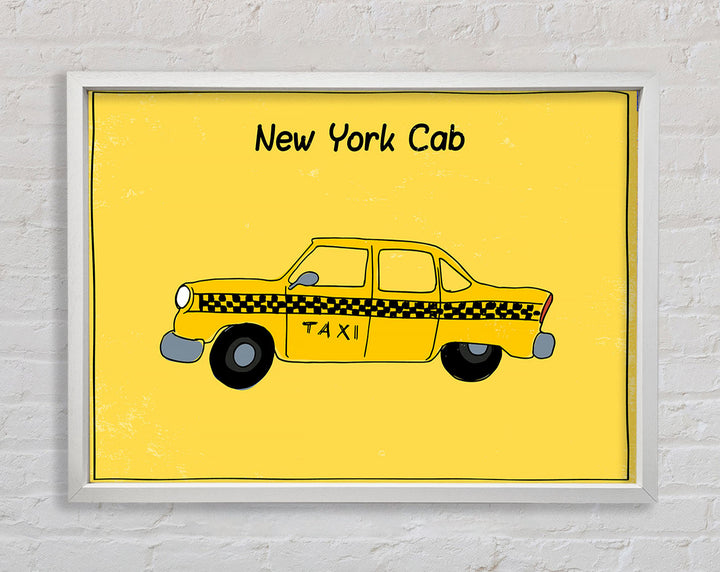 Gerahmter Druck „NYC Retro Cab“, erhältlich in mehreren Rahmenfarben. Fertig zum Aufhängen aus der Schachtel und handgefertigt im Vereinigten Königreich.