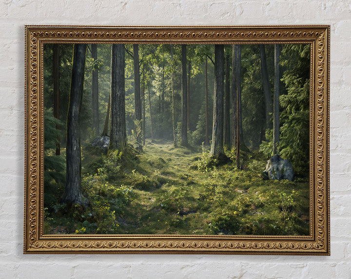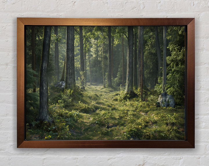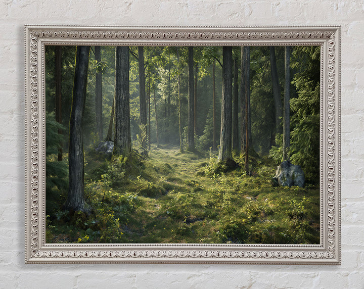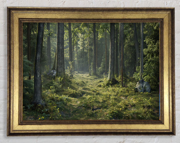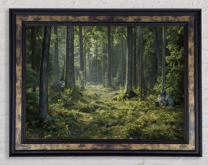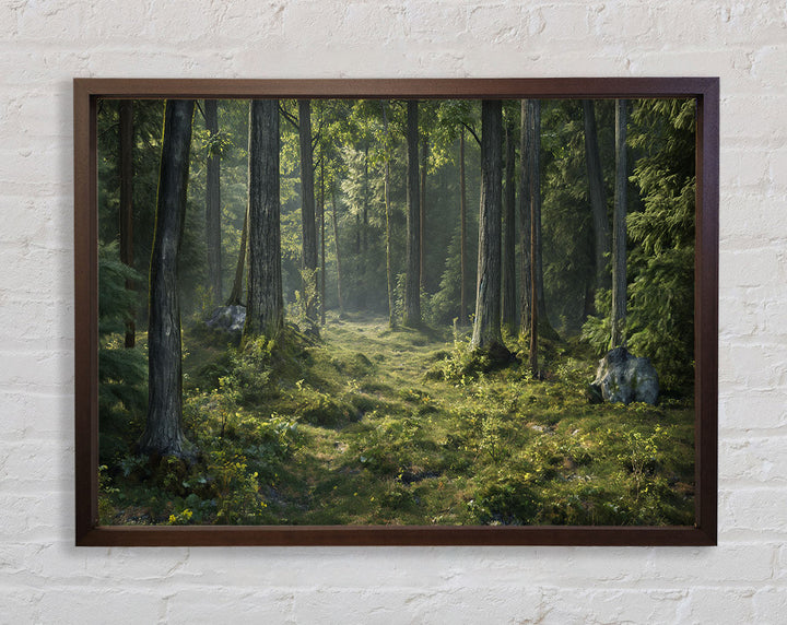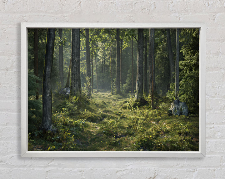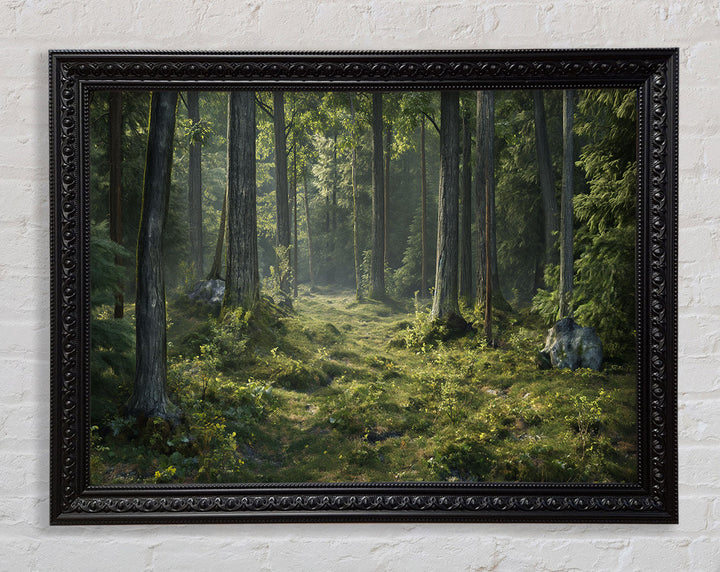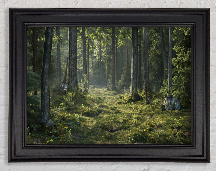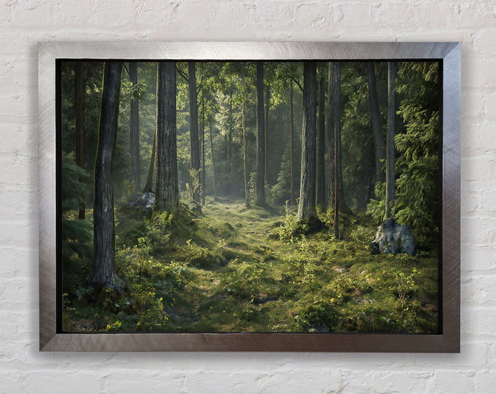 Introducing the Old Forest Greenery Framed Print, a stunning piece of framed art that brings the serene beauty of nature into your home. Available in six sizes, from small to oversized, this print fits perfectly in any space. Choose from a variety of colors to match your decor. Each piece is handmade in the United Kingdom, ensuring top-notch craftsmanship and attention to detail. The print comes ready to hang, making it easy to add a touch of elegance to your living room, bedroom, or office. Experience the calming effect of lush green forests every day with this exquisite framed art.