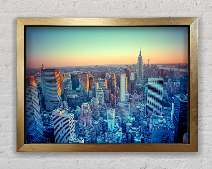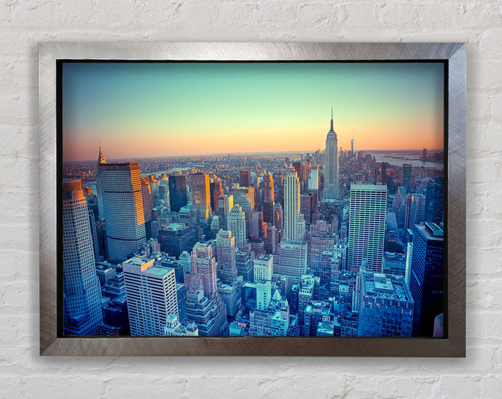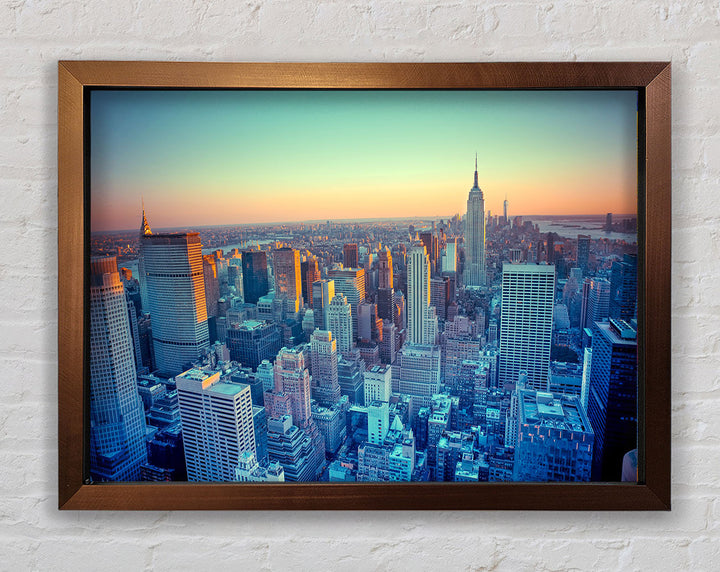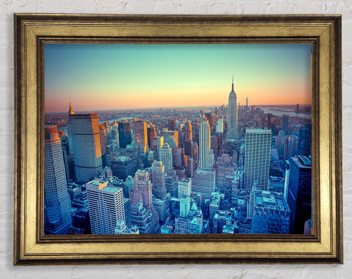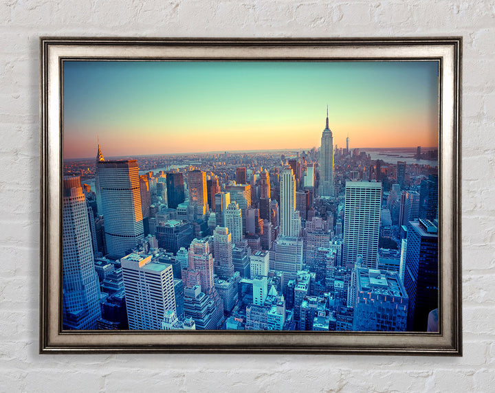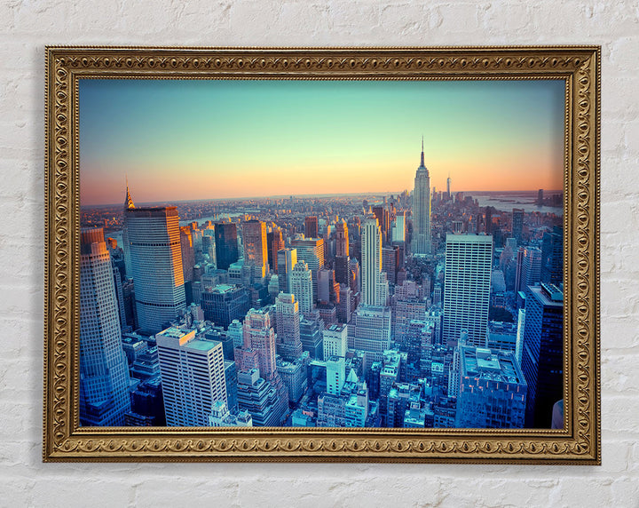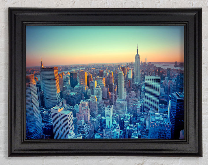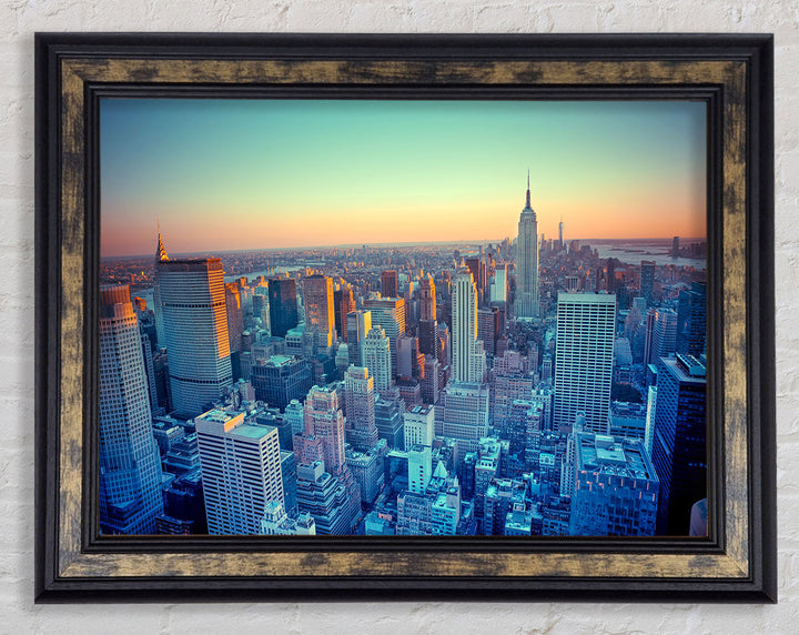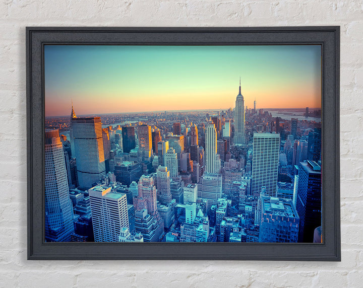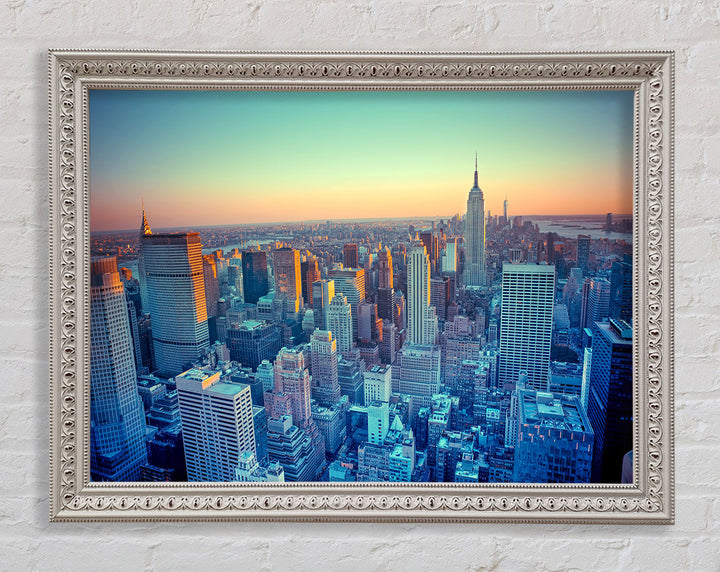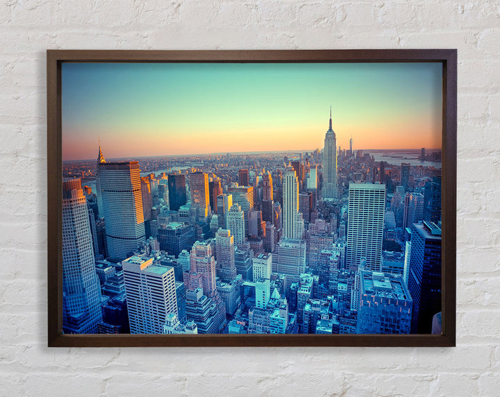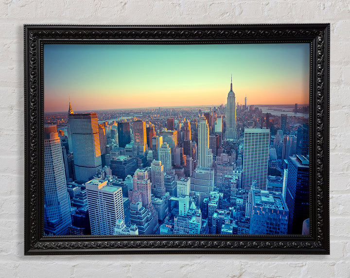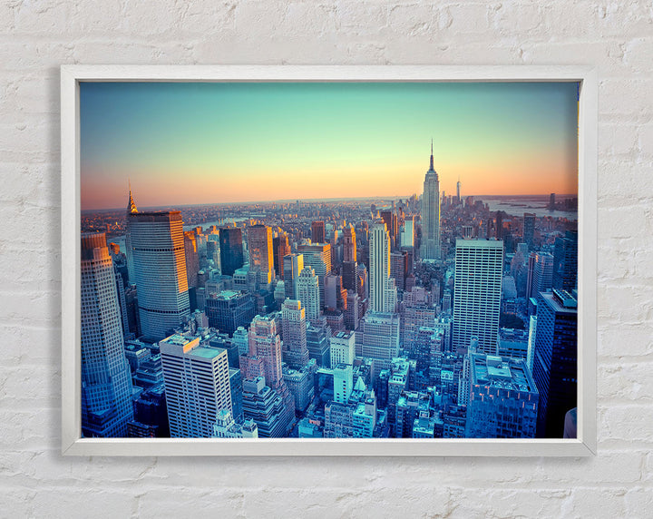 Gerahmter Druck „An einem Wintermorgen über der Stadt“, erhältlich in mehreren Rahmenfarben. Fertig zum Aufhängen aus der Schachtel und handgefertigt im Vereinigten Königreich.