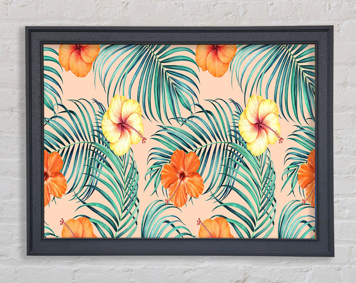 Gerahmter Druck „Orange Flower Mix“, erhältlich in mehreren Rahmenfarben. Fertig zum Aufhängen aus der Schachtel und handgefertigt im Vereinigten Königreich.