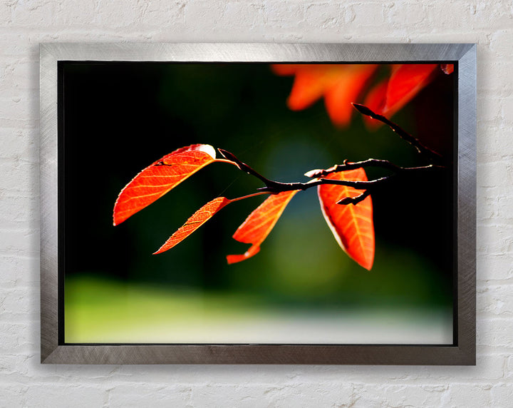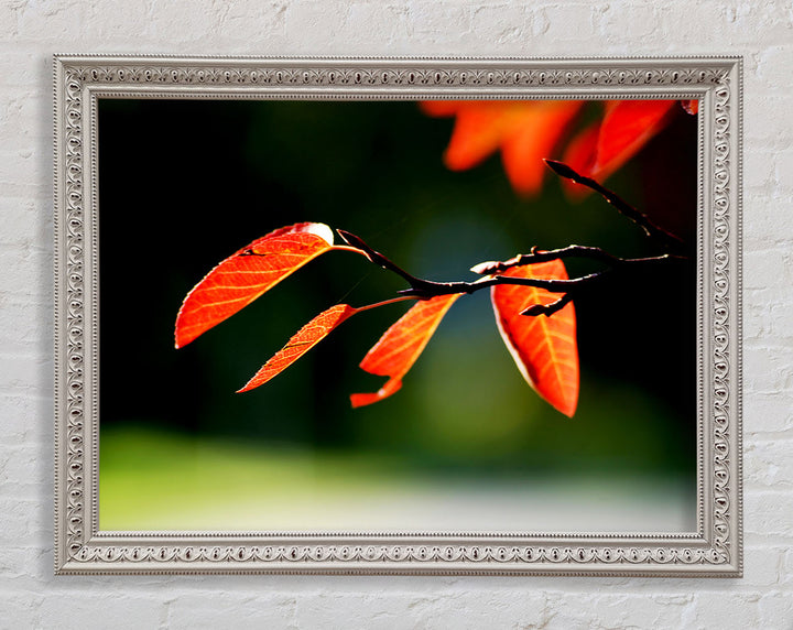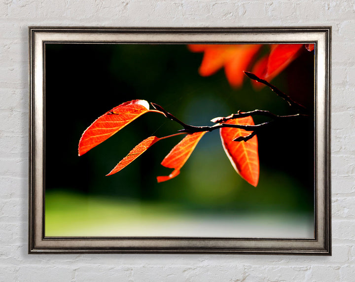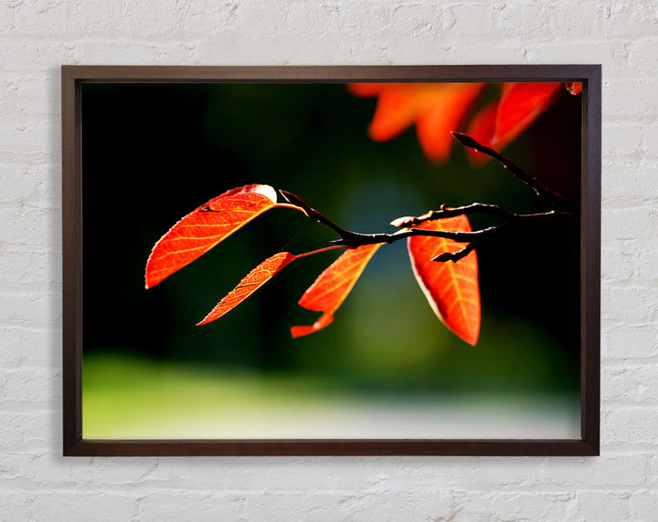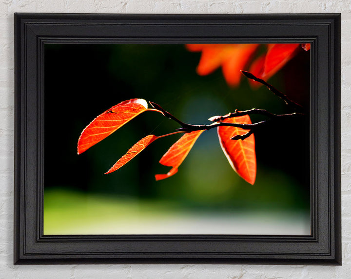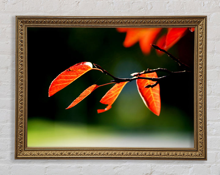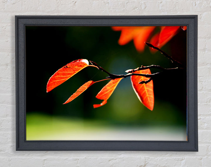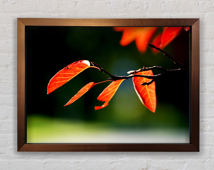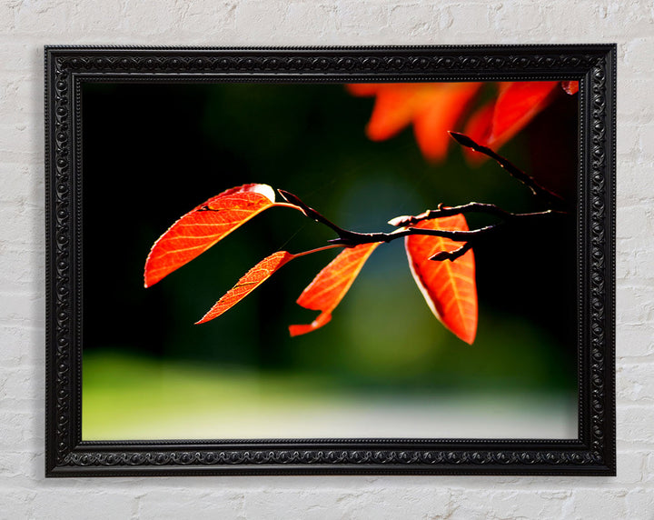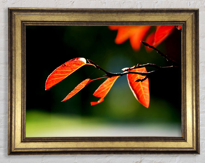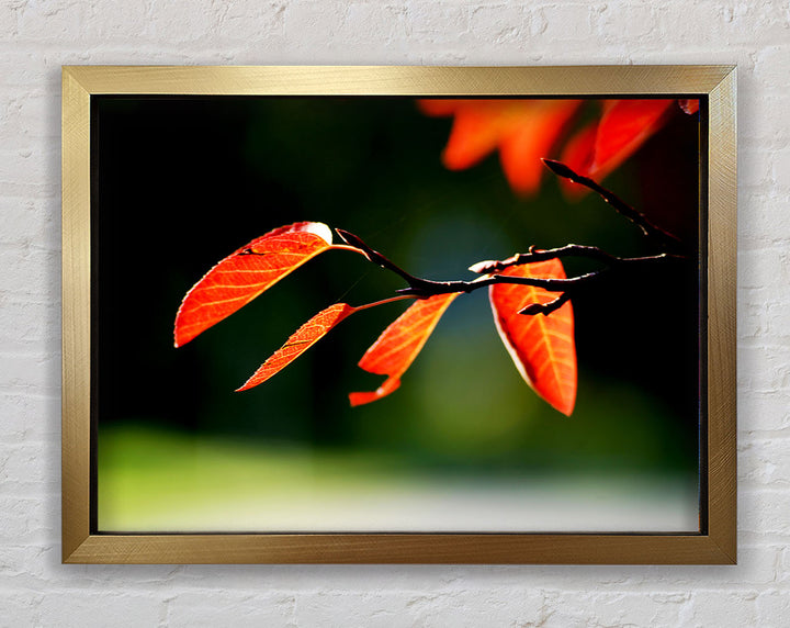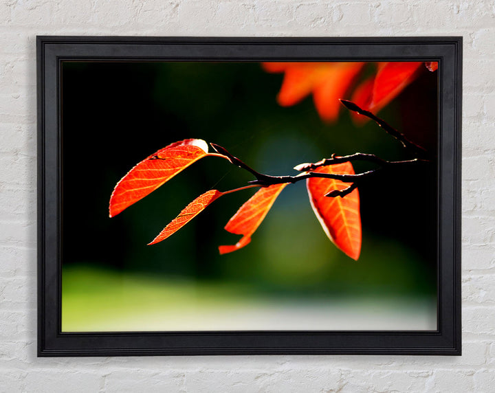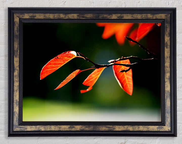 Gerahmter Druck „Orange Leaves In Sunlight“, erhältlich in mehreren Rahmenfarben. Fertig zum Aufhängen aus der Schachtel und handgefertigt im Vereinigten Königreich.