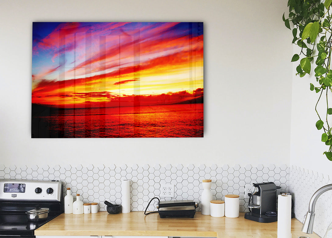 Orange Ocean Calm-Acryldruck, UV-gedruckt auf 5 mm dickes Acrylglas. Wird mit allem geliefert, was Sie zum Aufhängen an Ihre Wand benötigen.