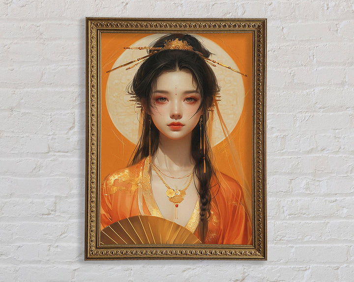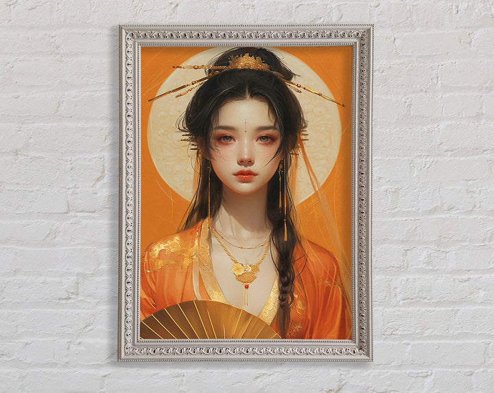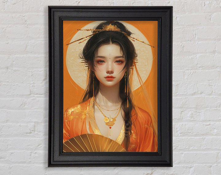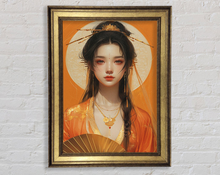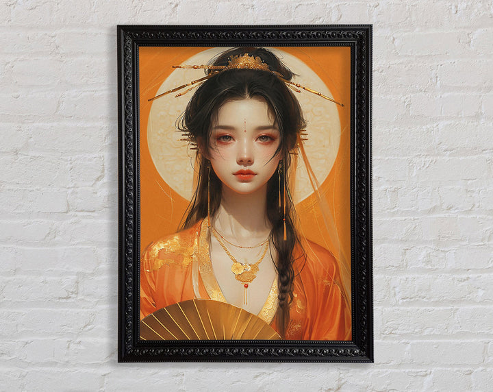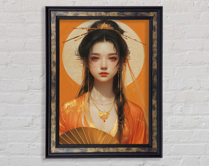 Introducing the stunning Orange Oriental Woman Framed Print, a masterpiece of framed art that brings elegance and vibrant color to any room. This beautiful piece is available in six different sizes, ranging from small to oversized, making it easy to find the perfect fit for your space. Each print is meticulously handmade in the United Kingdom, ensuring high-quality craftsmanship and attention to detail.