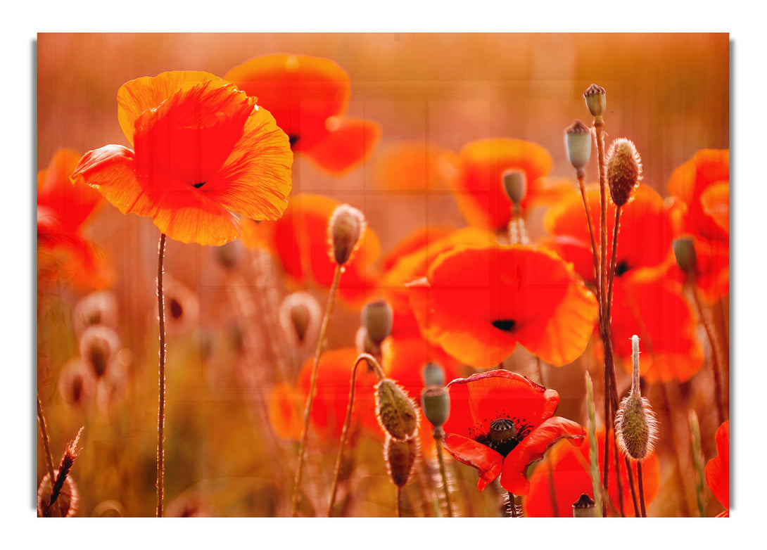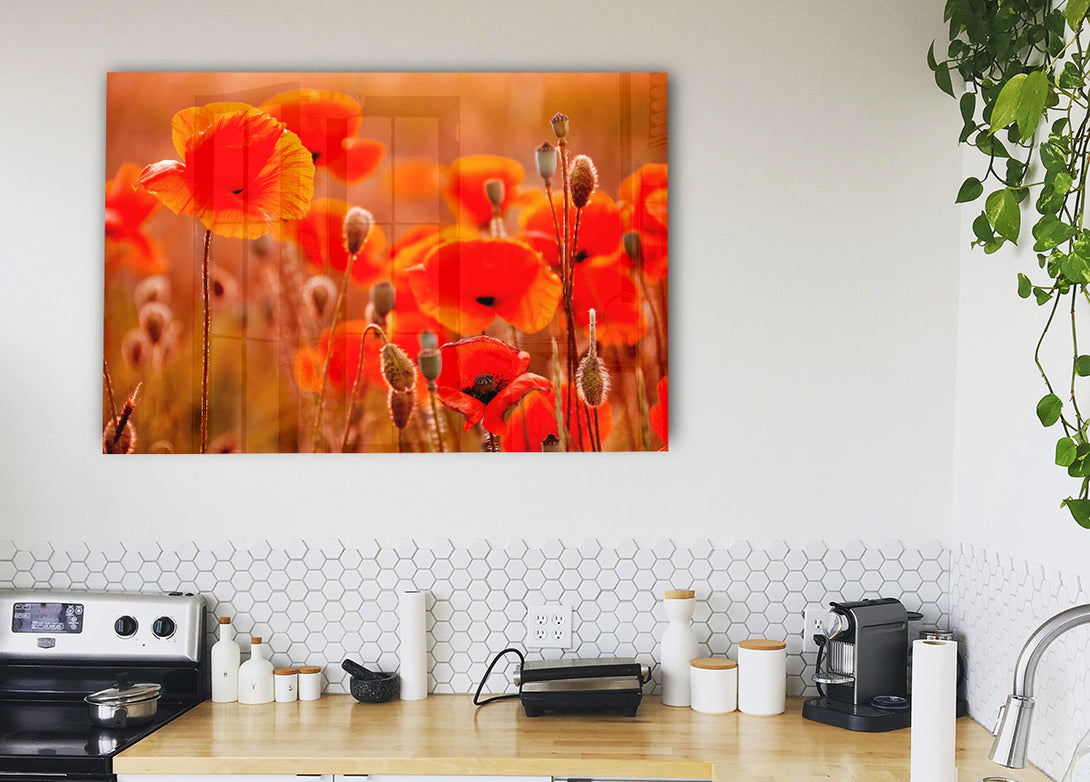 Acryldruck „Orange Poppy Field“, UV-gedruckt auf 5 mm dickes Acrylglas. Wird mit allem geliefert, was Sie zum Aufhängen an die Wand brauchen.