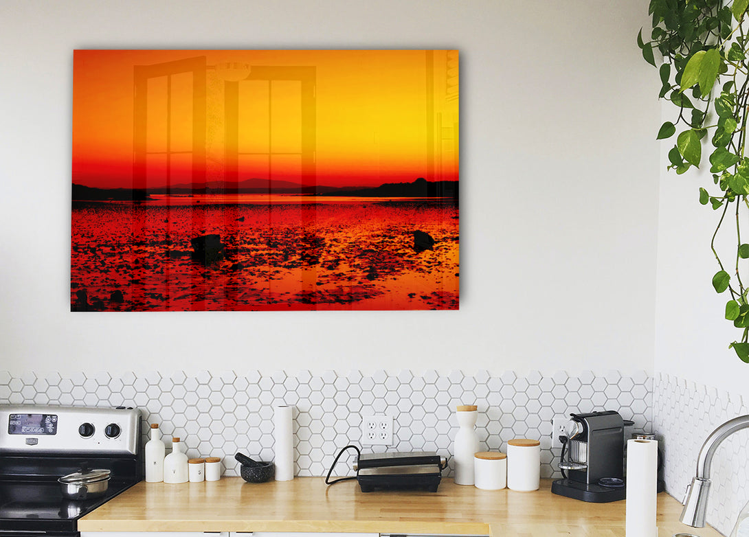 Orange Red Ocean Surprise-Acryldruck, UV-gedruckt auf 5 mm dickes Acrylglas. Wird mit allem geliefert, was Sie zum Aufhängen an Ihre Wand benötigen.