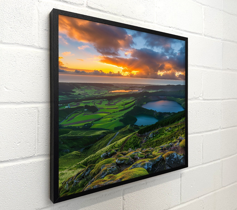 Orange Sky Over Green Hills