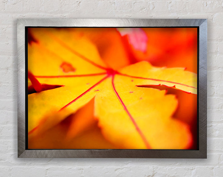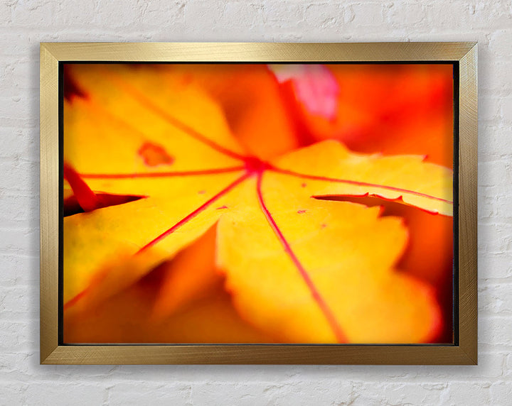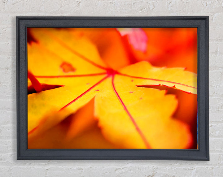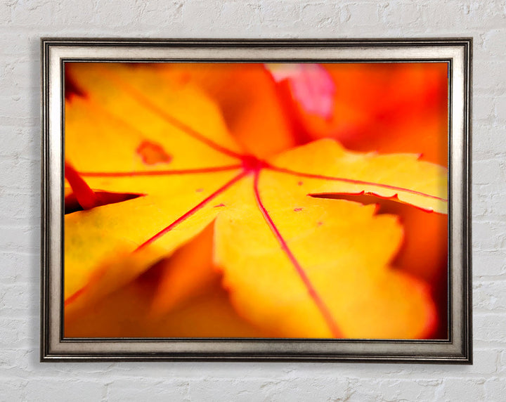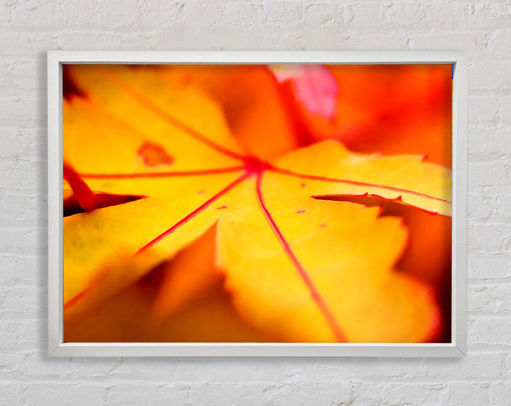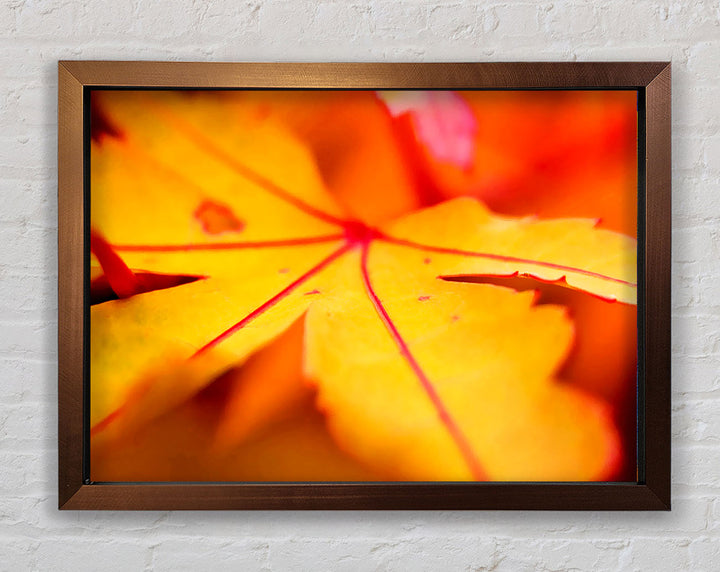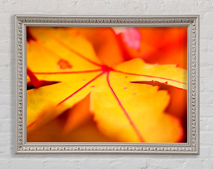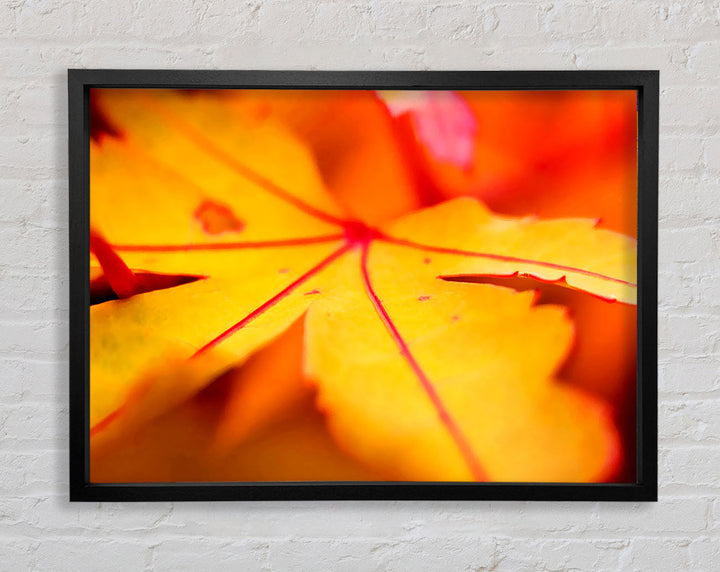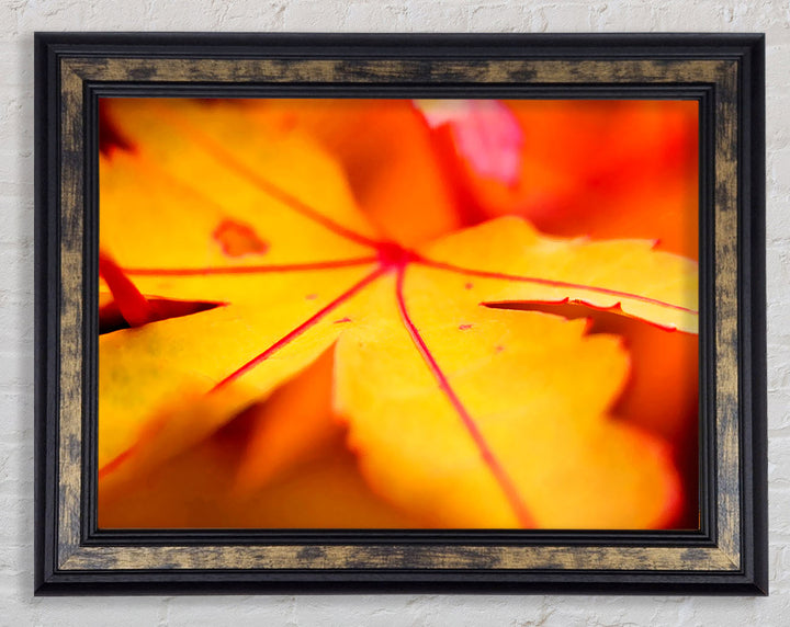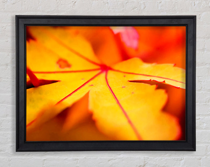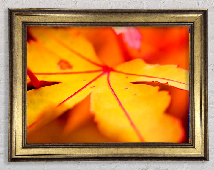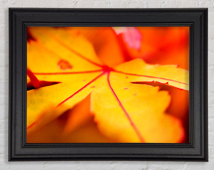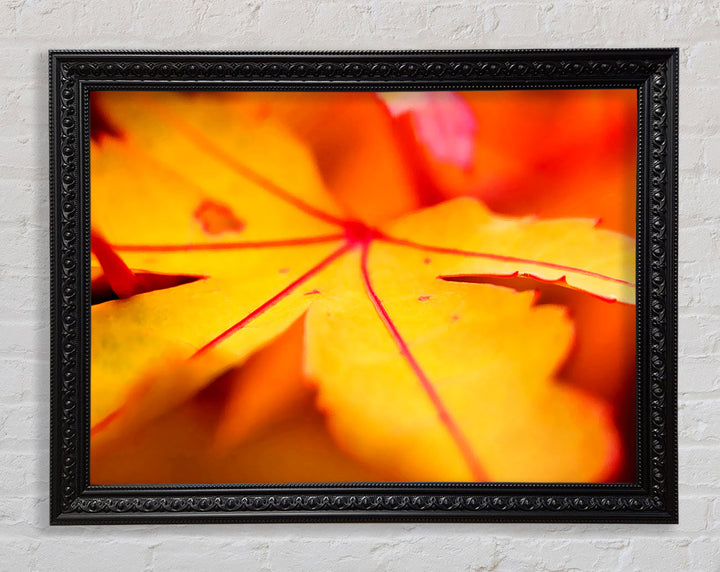 Gerahmter Druck „Orange Winter Leaf“, erhältlich in mehreren Rahmenfarben. Fertig zum Aufhängen aus der Schachtel und handgefertigt im Vereinigten Königreich.